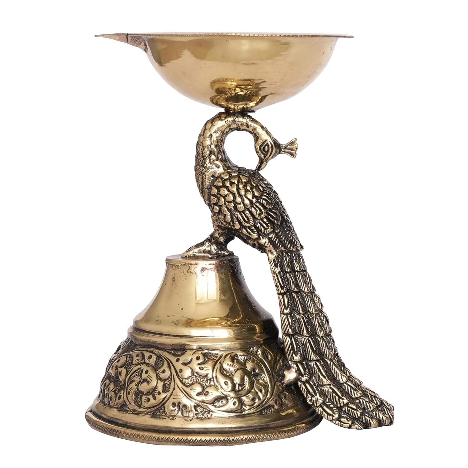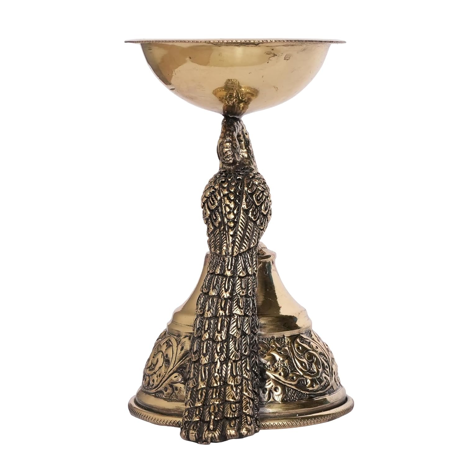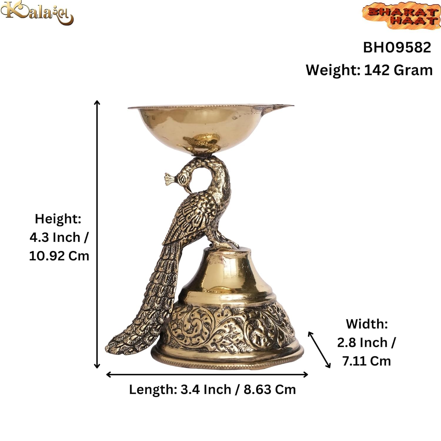 Kalarambh Brass Peacock Diya Brass Pooja Room Home Decor Diya 4.3 inch