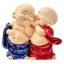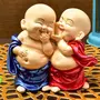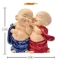 Karigaari India Handcrafted Resine Little Laughing Buddha Monk Sculpture | Showpiece for Home Decor and Office Blue