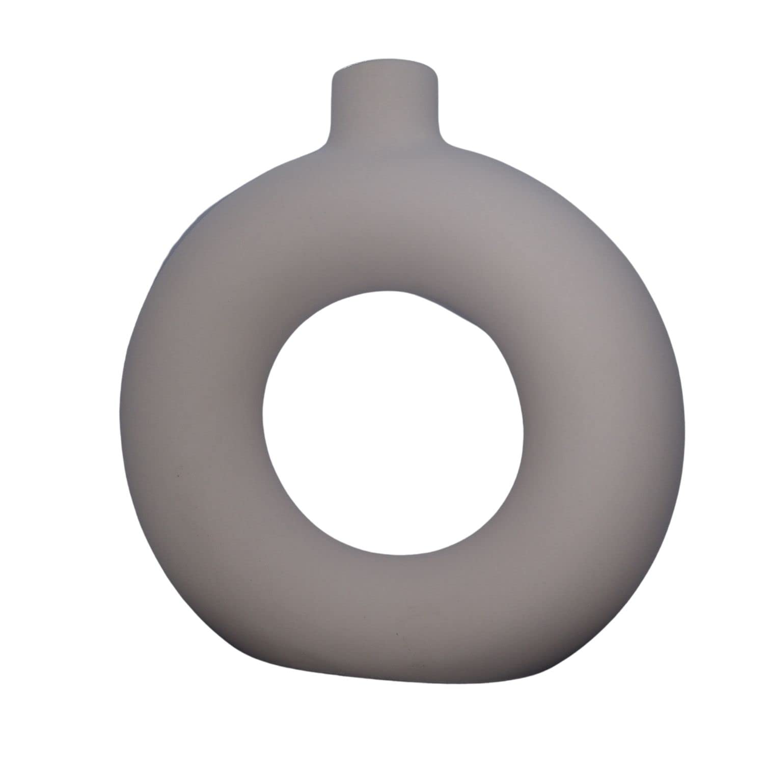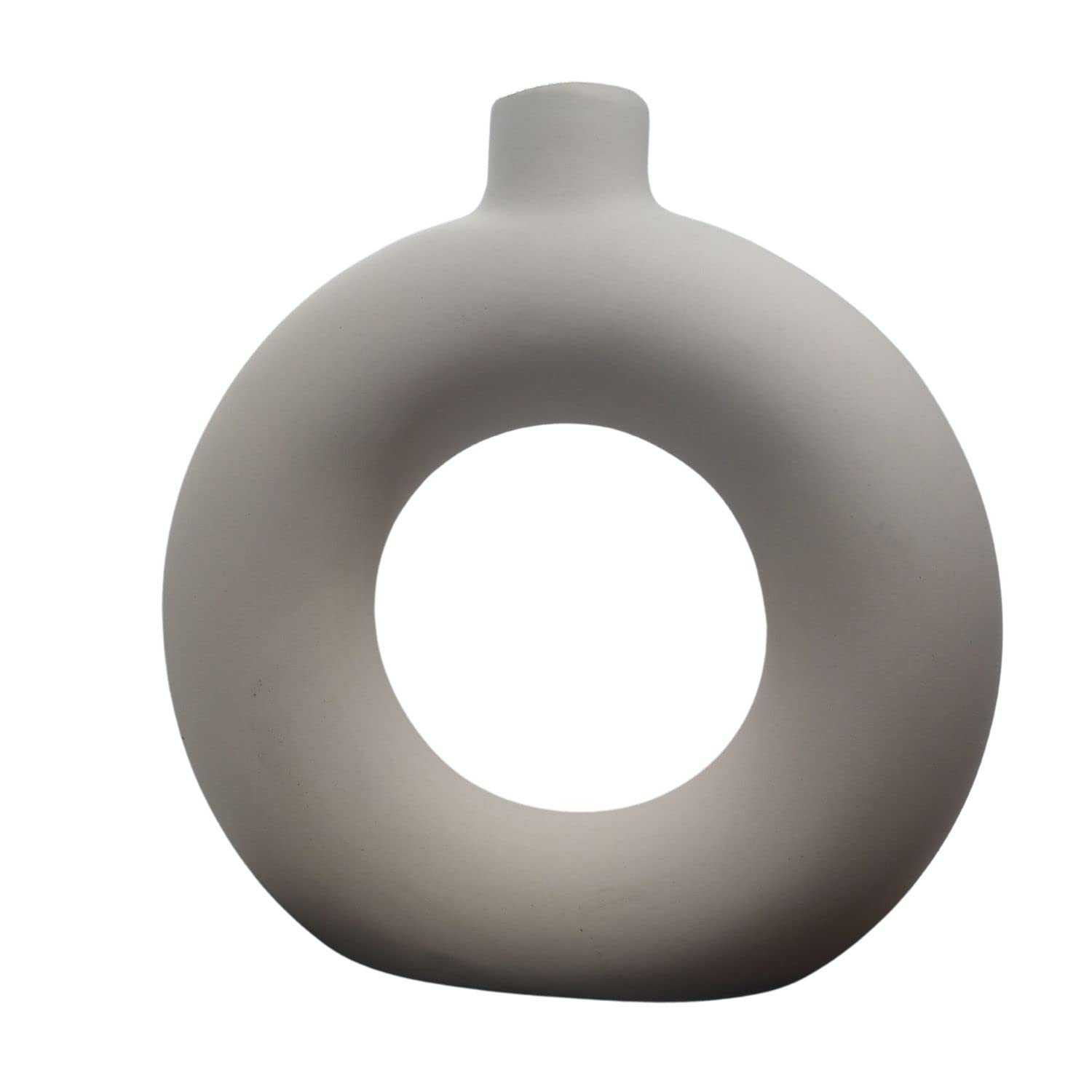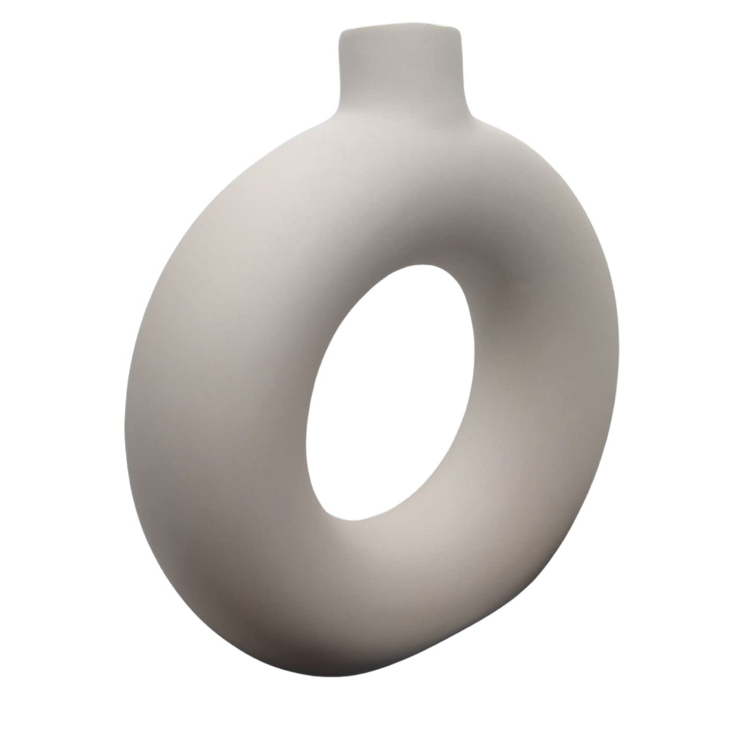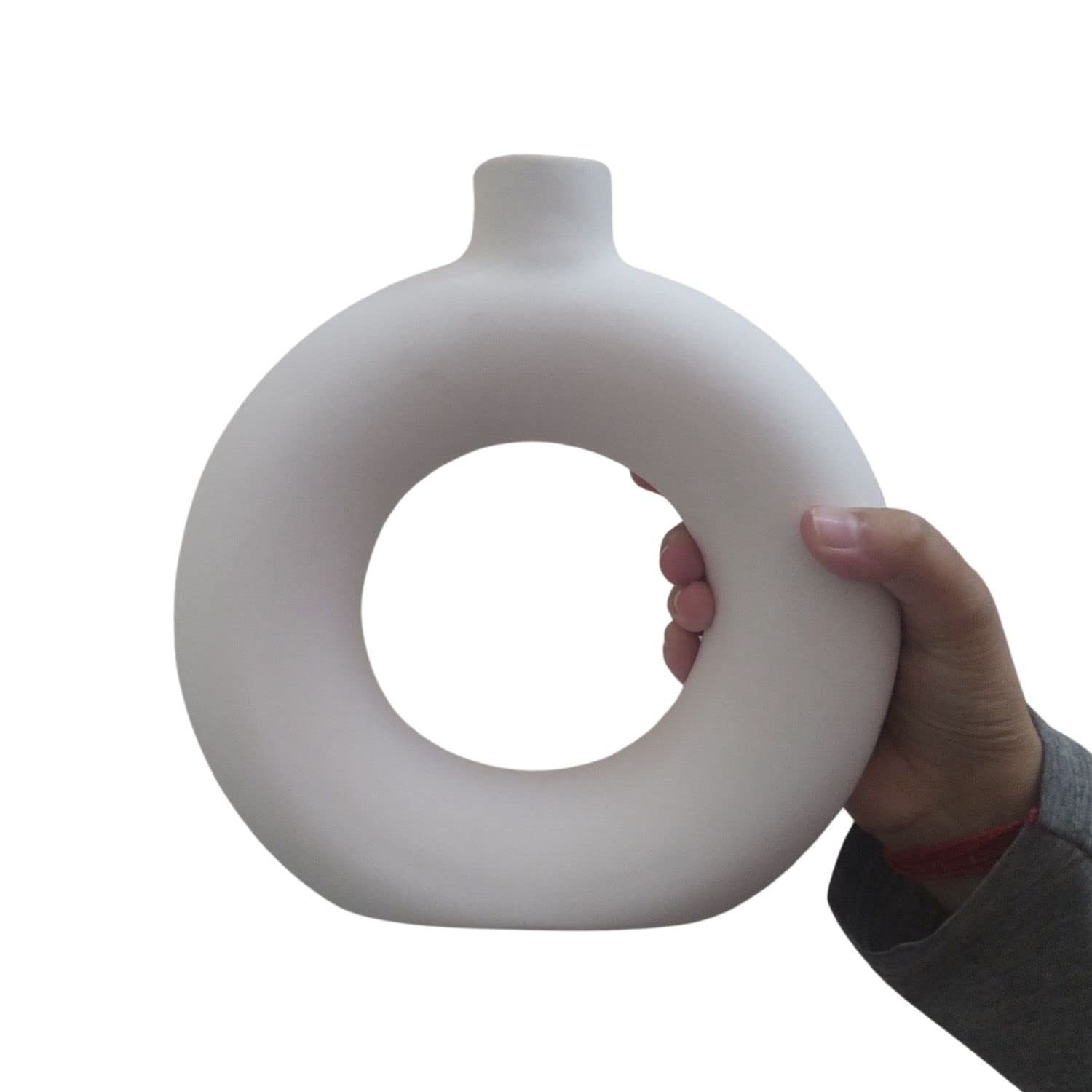 Donut Design: The decorative vase is designed with a unique donut shape that differs from the traditional vase. The hollowed out center makes it not only a flower vase but also a work of art.