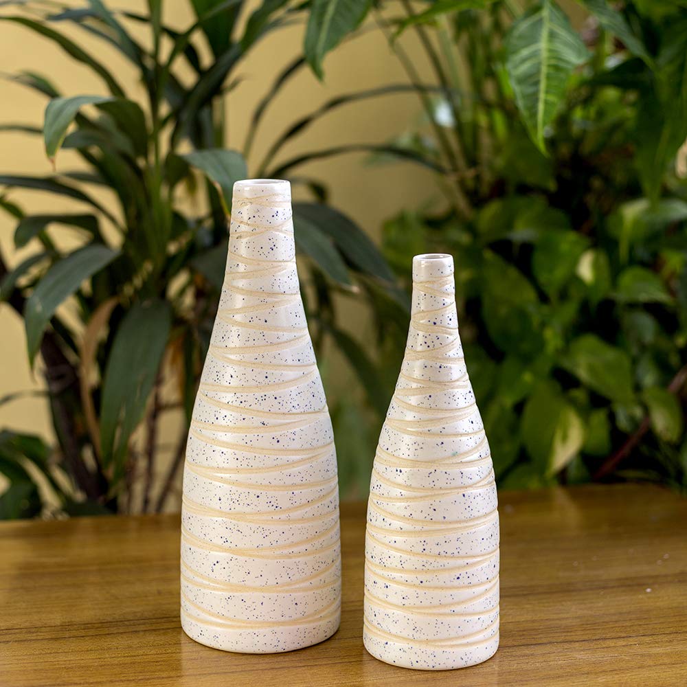 HomeHomeHome AccentVasesKHURJA POTTERY Flower Vases Set of 2 for Living Room | Made of Ceramic 11.5 and 10 Inches Height Long Vases | Handmade Flower Vases Pot Ceramic