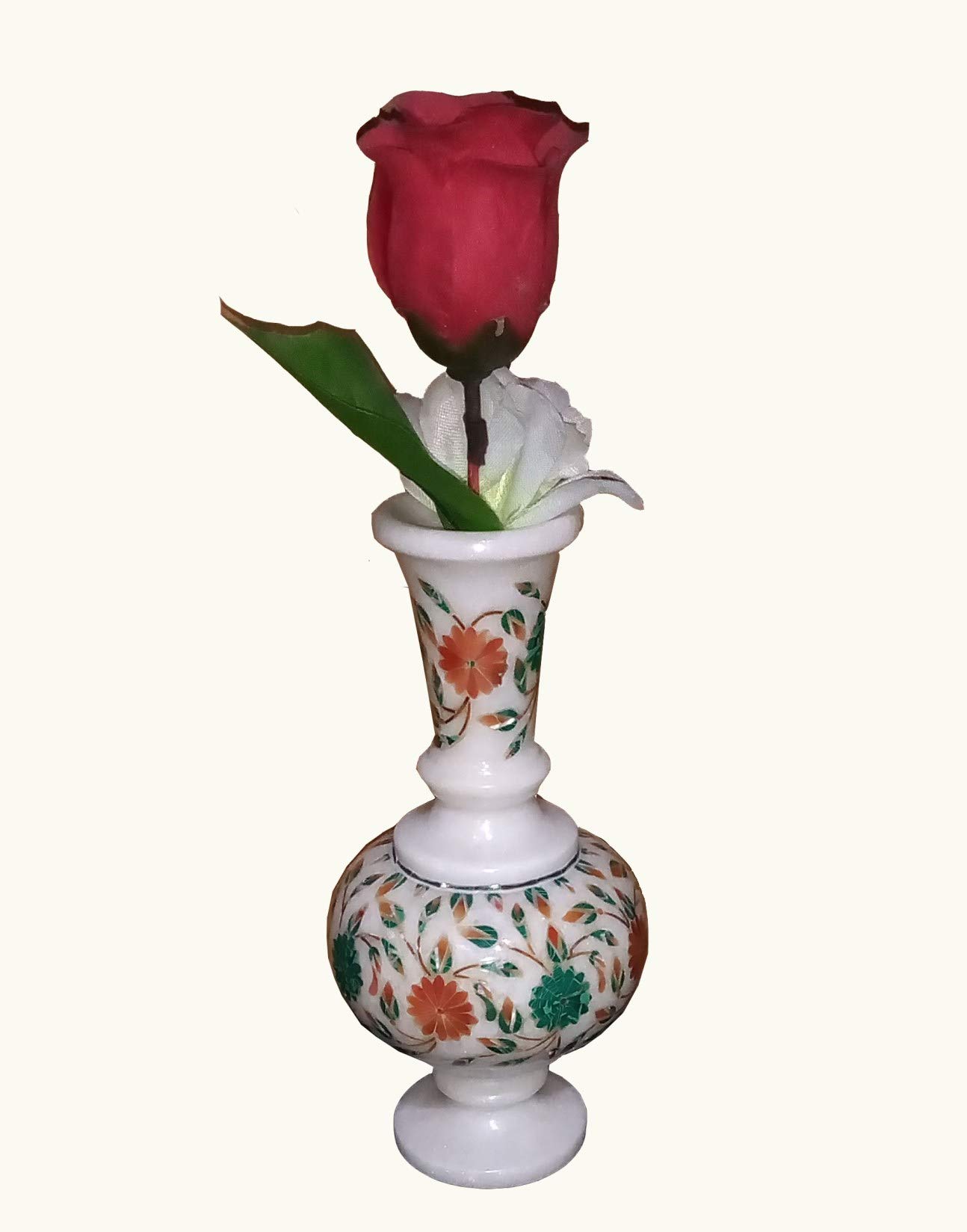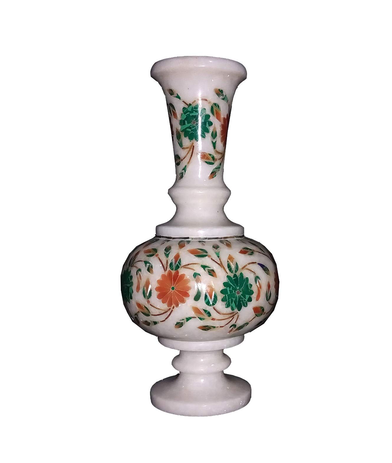 MARBLE INLAY ART AGRA - PACCHIKARI Handcrafted White Marble Inlay Flower Vase with Inlay Work. (Size : 8 inch Height)
