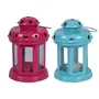 HomeHomeHome AccentLanternsRAJASTHANI METAL HANDICRAFTSDecorative Iron Lantern with Tea Light Candle for Home or Office Decoration (Set of 2 - Sky Blue & Pink)