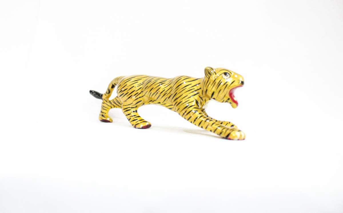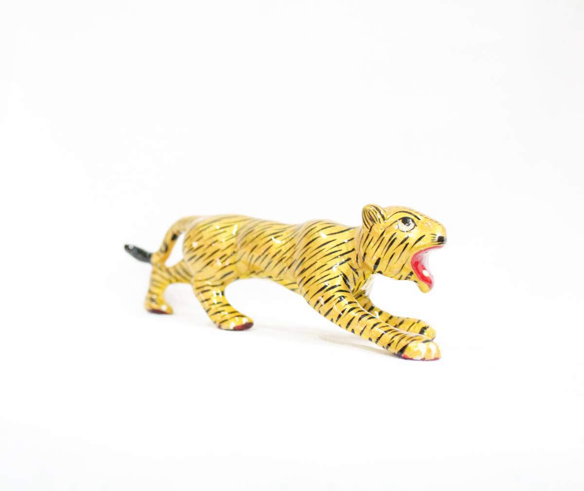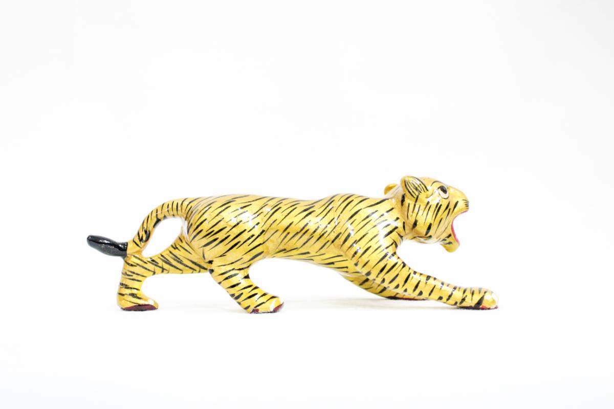 CHURU SANDALWOOD CARVED Metal Handmade Tiger Showpiece Figurines 3" Home Interior Decor Item Handicraft Wild Animal