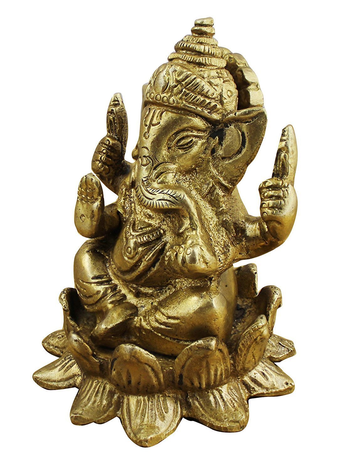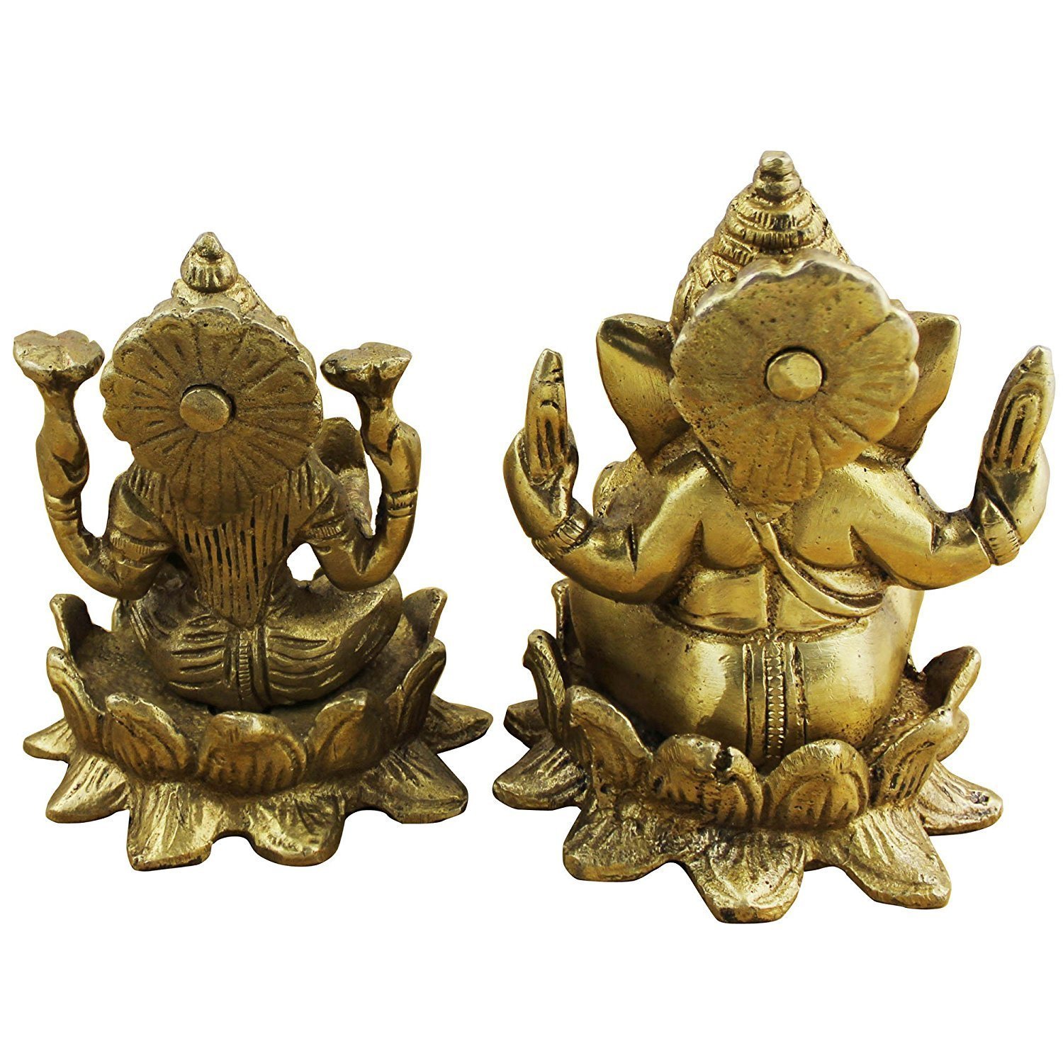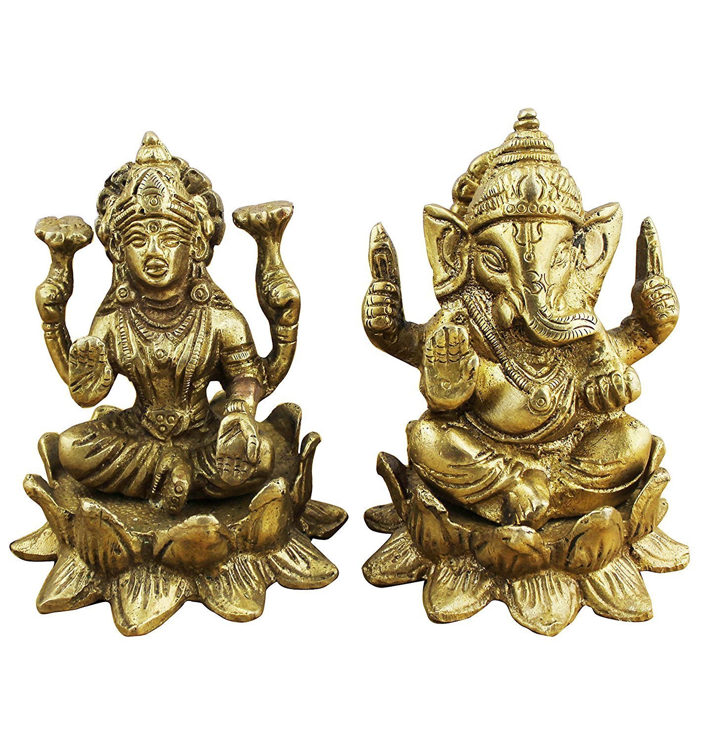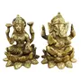 CRAFTHUT Indian God - Ganesha and Goddess Lakshmi/Laxmi Figurine Set - Handmade Brass Statue - 3.1" x 2.5" x 2.5"