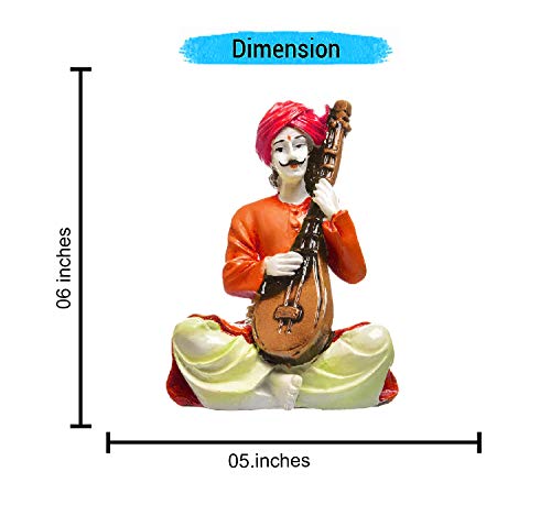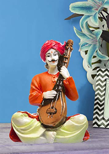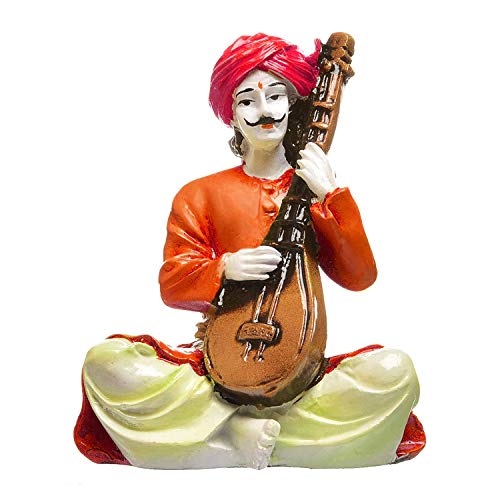 India Beautiful Hand Carved Rajasthani Men Playing Veena Polyresin Showpiece for Home Decor.