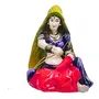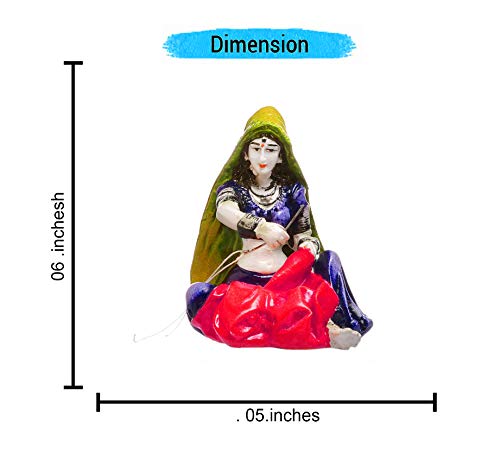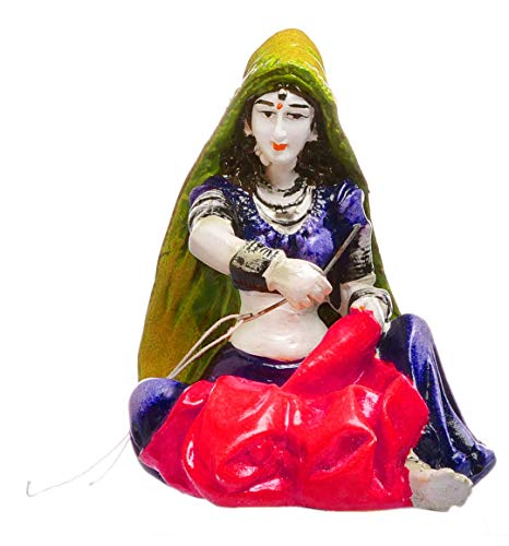 India Home Decor Beautiful Hand Carved Rajasthani Lady Stitching Clothes Polyresin Showpiece for Drawing & Living Room.
