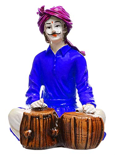 India Home Decor Beautiful Hand Carved Rajasthani Men Playing Tabla Polyresin Showpiece for Drawing & Living Room.