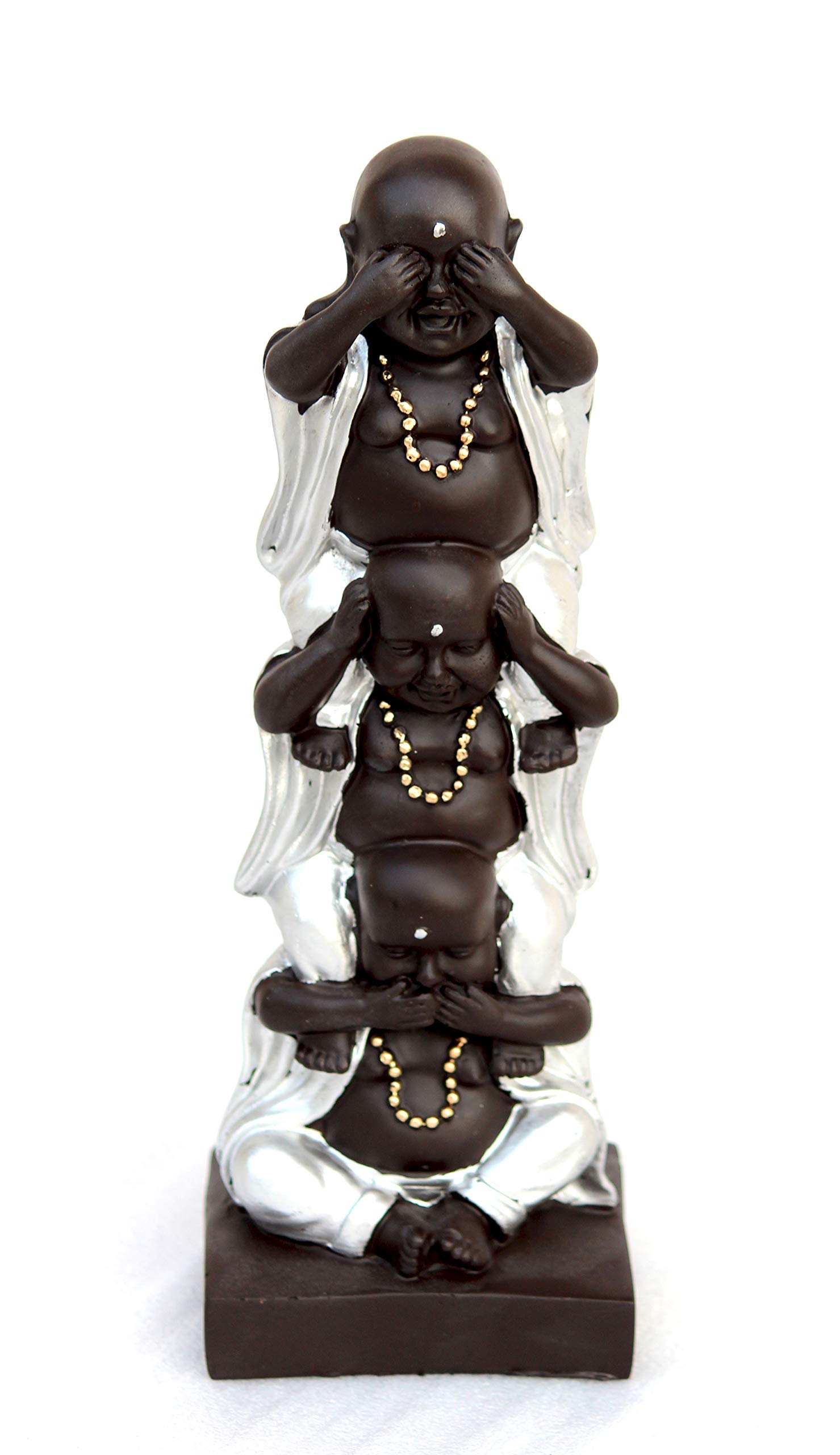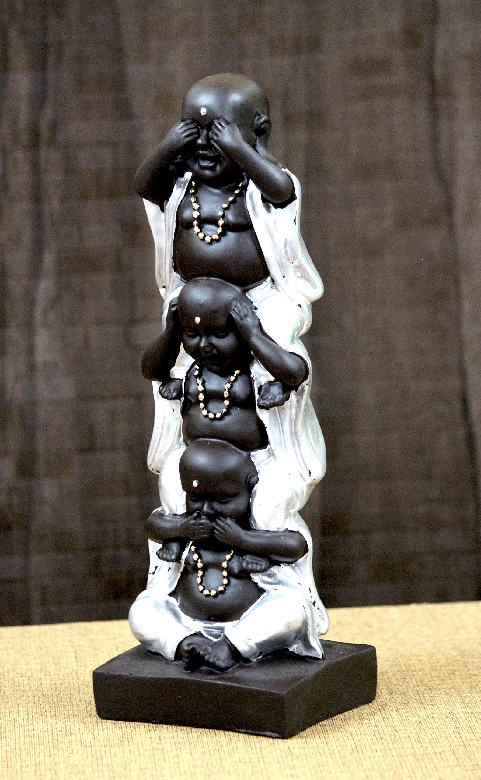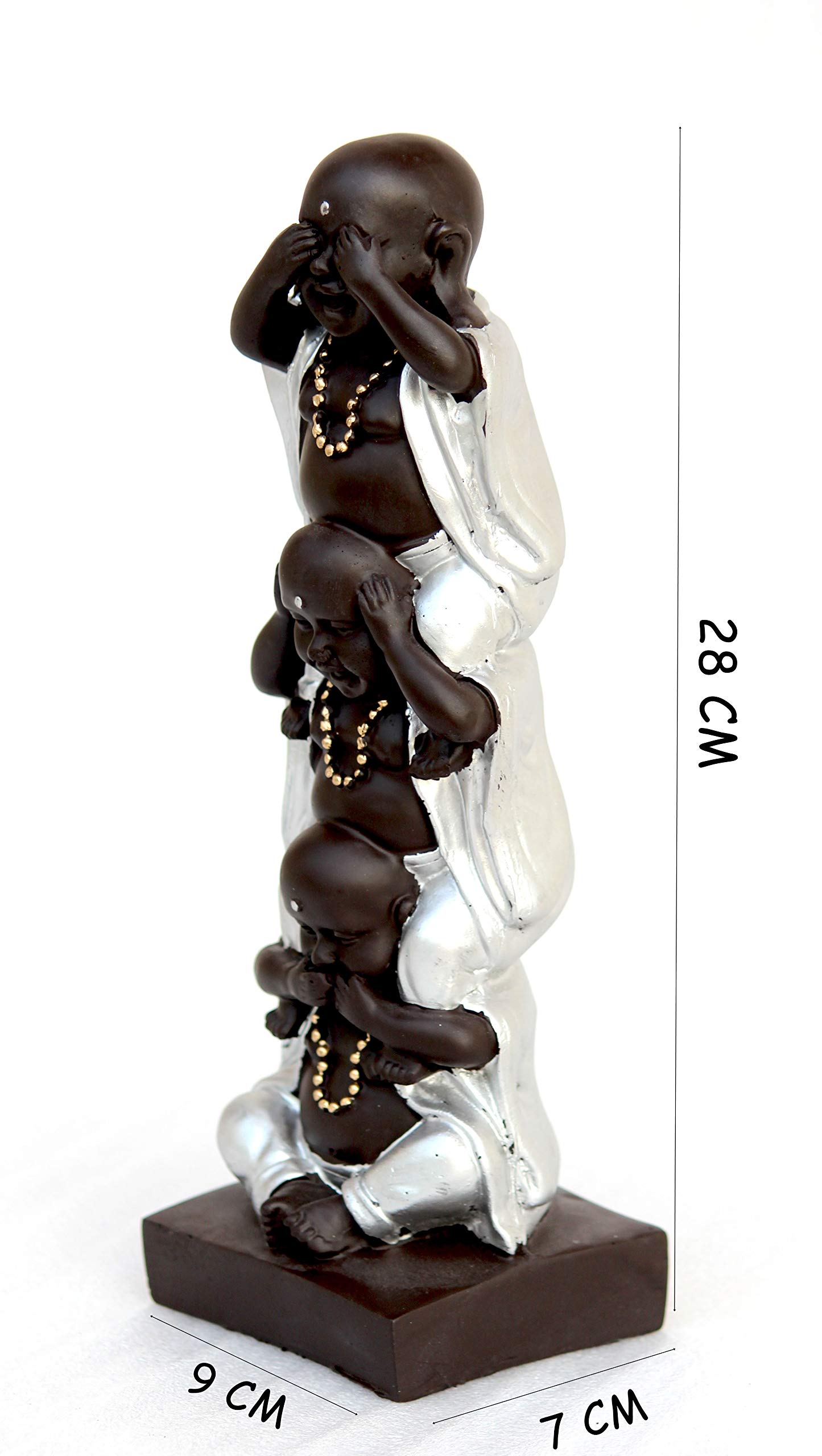 KU - BUDDHIST FIGURINES Handcrafted Antique Finish Laughing Buddha Decorative Showpiece - 28 cm (Polyresin Multicolor)