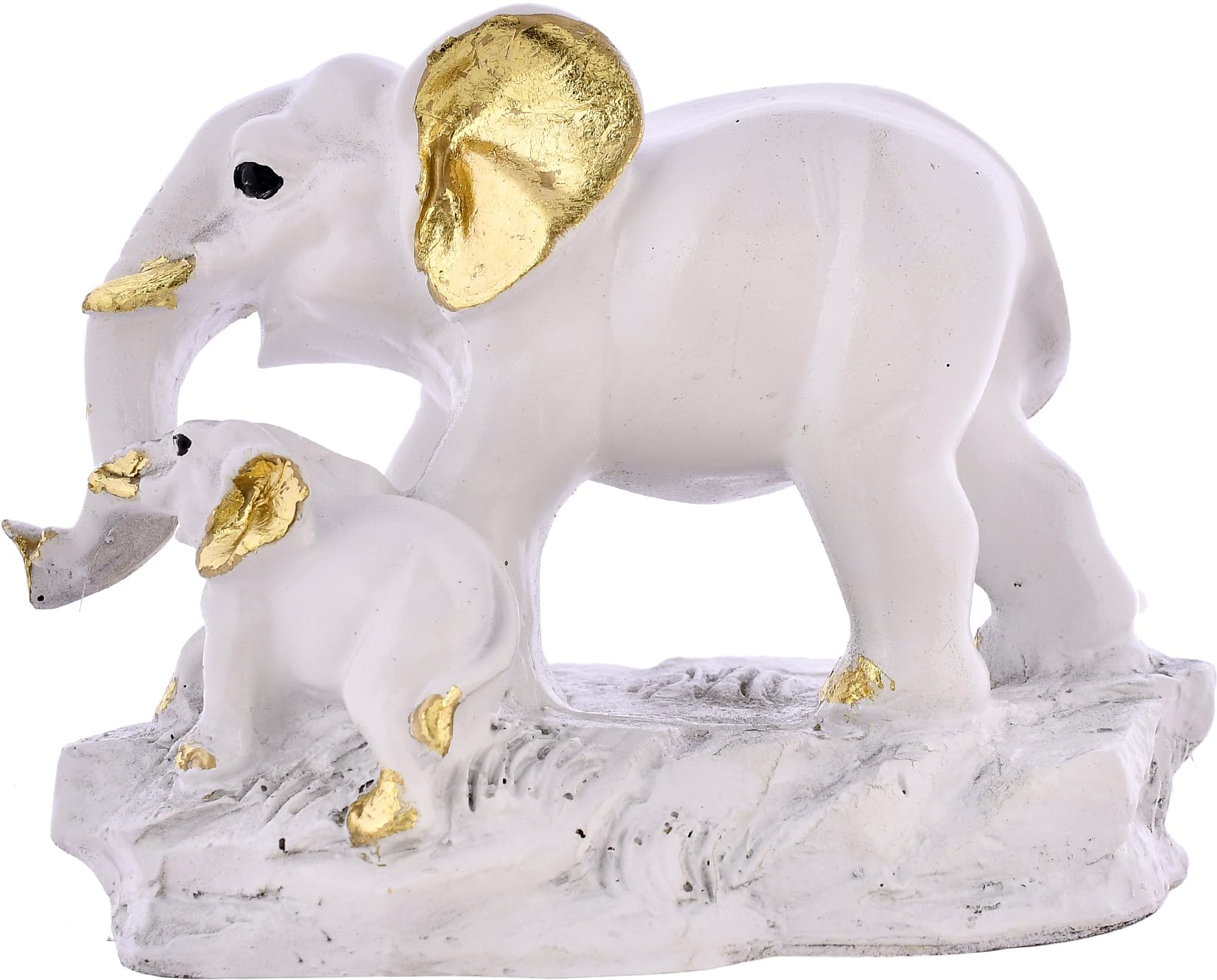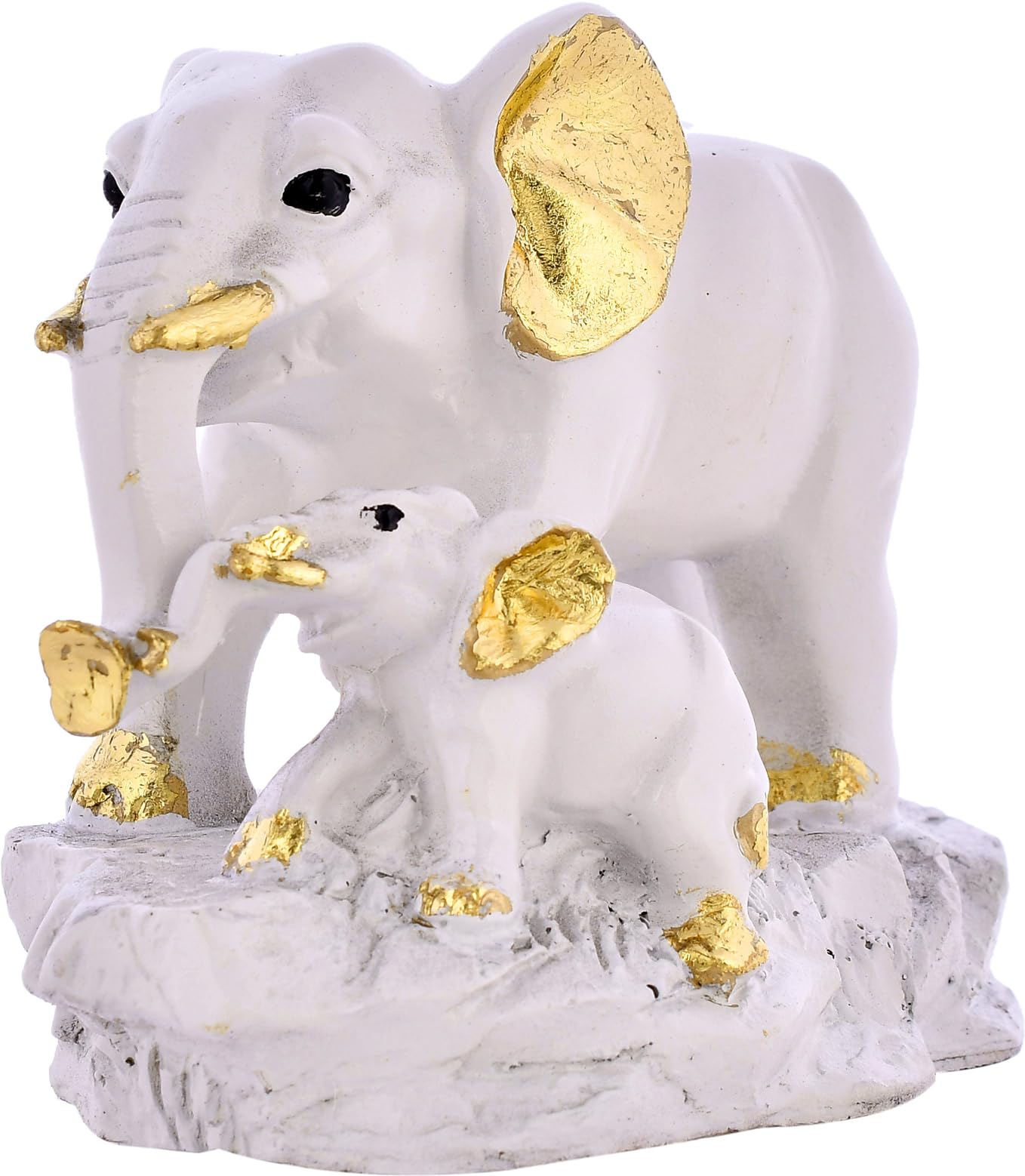 KU - BUDDHIST FIGURINES Walking Small Elephant Family Mom and Baby Sculpture for Home Decor Showpiece Figurine