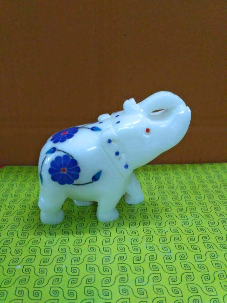 MARBLE INLAY ART AGRA - PACCHIKARI Marble Elephant Inlay Work uptrunk 2.5"