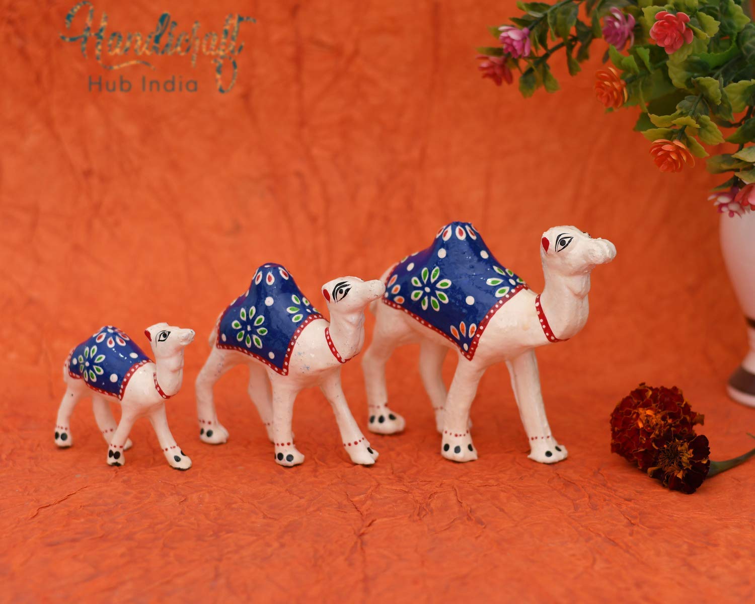HomeHomeHome AccentFigurinesRAJASTHANI METAL HANDICRAFTSHandcrafted Paper Mache Printed 3 Piece Camel Set Showpiece for Home Decorative Items and Gift White Set of 3