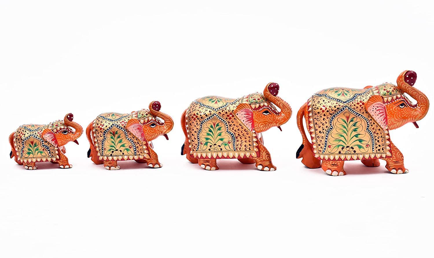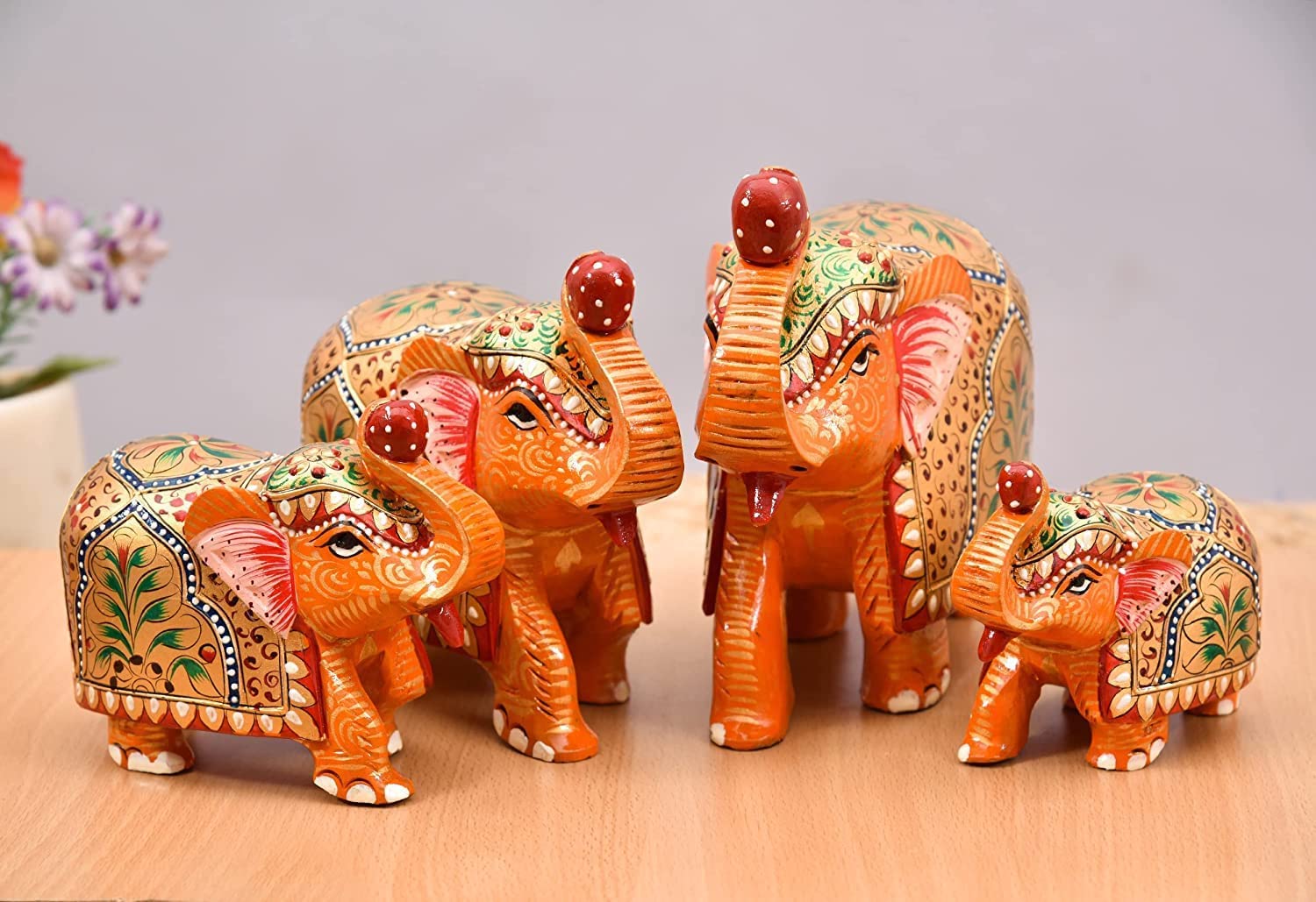 HomeHomeHome AccentFigurinesWOOD CRAFTS OF RAJASTHAN Embossed Hand Printed Elephant Showpiece || Gift for Clients Customers Family & Friends Home Office Thank You Gift House Warming New Year Promotion Gift