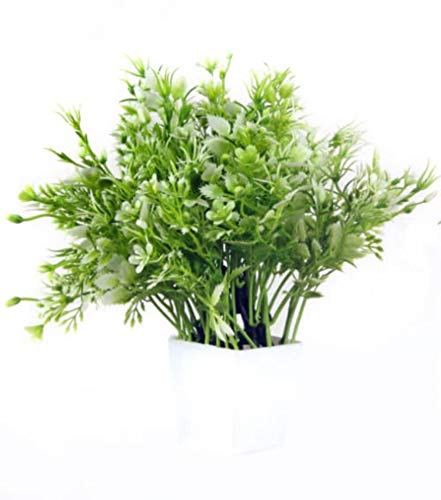 HomeHomeHome AccentArtificial FlowersChristmas Vibes Mini Artificial Flower Plants with Pot Plastic Faux Green Grass Fake Topiaries Shrubs for Home Decor Washroom and Office Decor H-21 cm