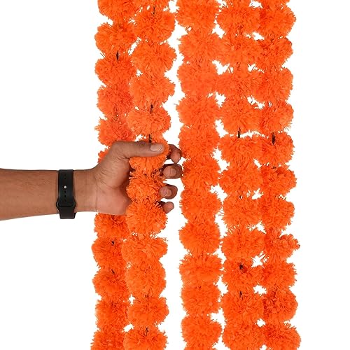 HomeHomeHome AccentArtificial FlowersFestive Vibes 2 Pcs Marigold Flower Garland Diwali Decoration 5ft Long Strands Artificial Marigold Flowers Hangings Tassels for Home Indian Wedding Indian Decor for Pooja Deepawali Orange