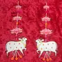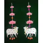 ZESTENTER Wood Handmade MDF Cow Pichwai with Lotus Cutouts and Pom Poms Backdrop Hangings for Decorations, 1 Pair, Multi-coloured