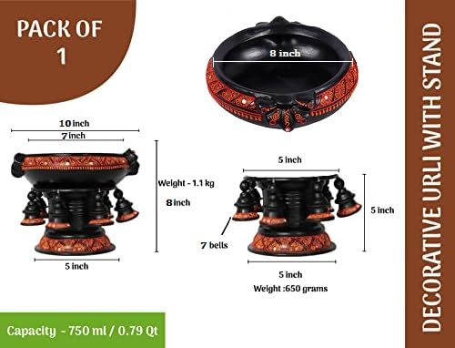 TOP QUALITY MATERIAL :Our urli with stand made of high quality terracotta and well handmade painted Finsihed d high temperature fired .DIMENSIONS: URULI:Outer dia:8.5 inchInner dia :6 inchHeight:2.5 inchinch STAND:Top dia:5inchHeight:5inchBottom :5inch CA