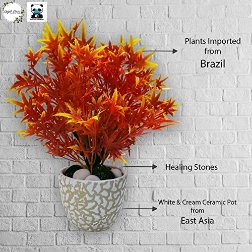 Caajib Decors | Artificial Golden Cherry Plant with Stainless Steel Pot for Home & Office Decoration