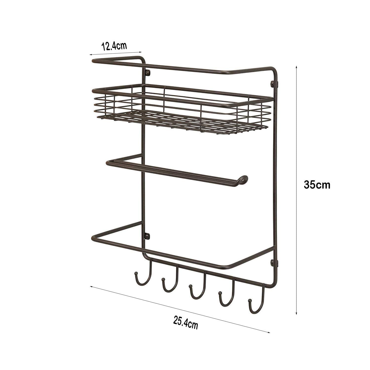 WROUGHT IRON CRAFTS Metal Kitchen/Bathroom Storage Rack Towel Holder/Paper Towel Holder with Hooks