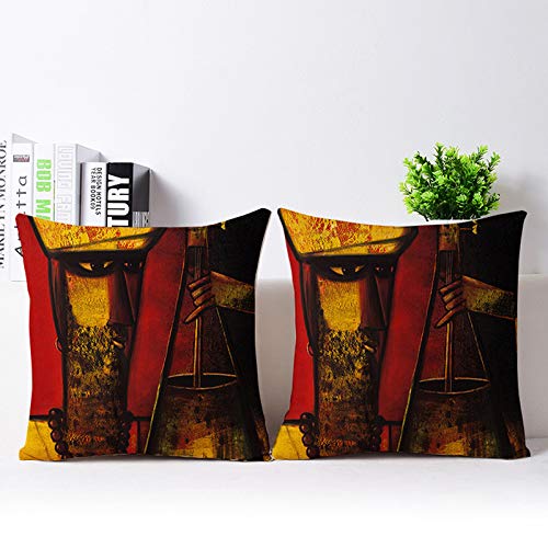 Christmas Vibes Ethnic Printed Jute Cushion Covers (16x16 inch Pack of 2) Cushion Covers Jute Cushion Covers Sofa Cushion Covers Diwali Cushion Cover LR111