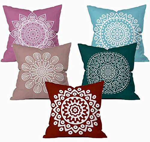 The Purple Tree Printed Cotton Cushion Covers (SC00271, 16x16 inches/40x40 cm, Multicolor) - Pack of 5