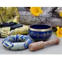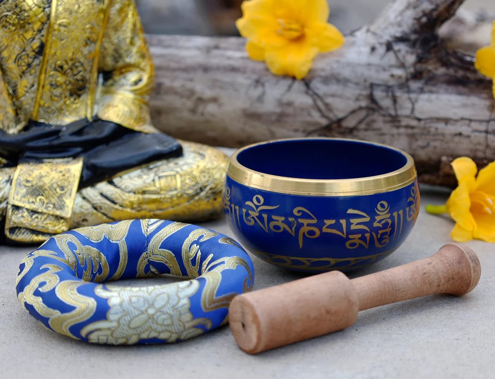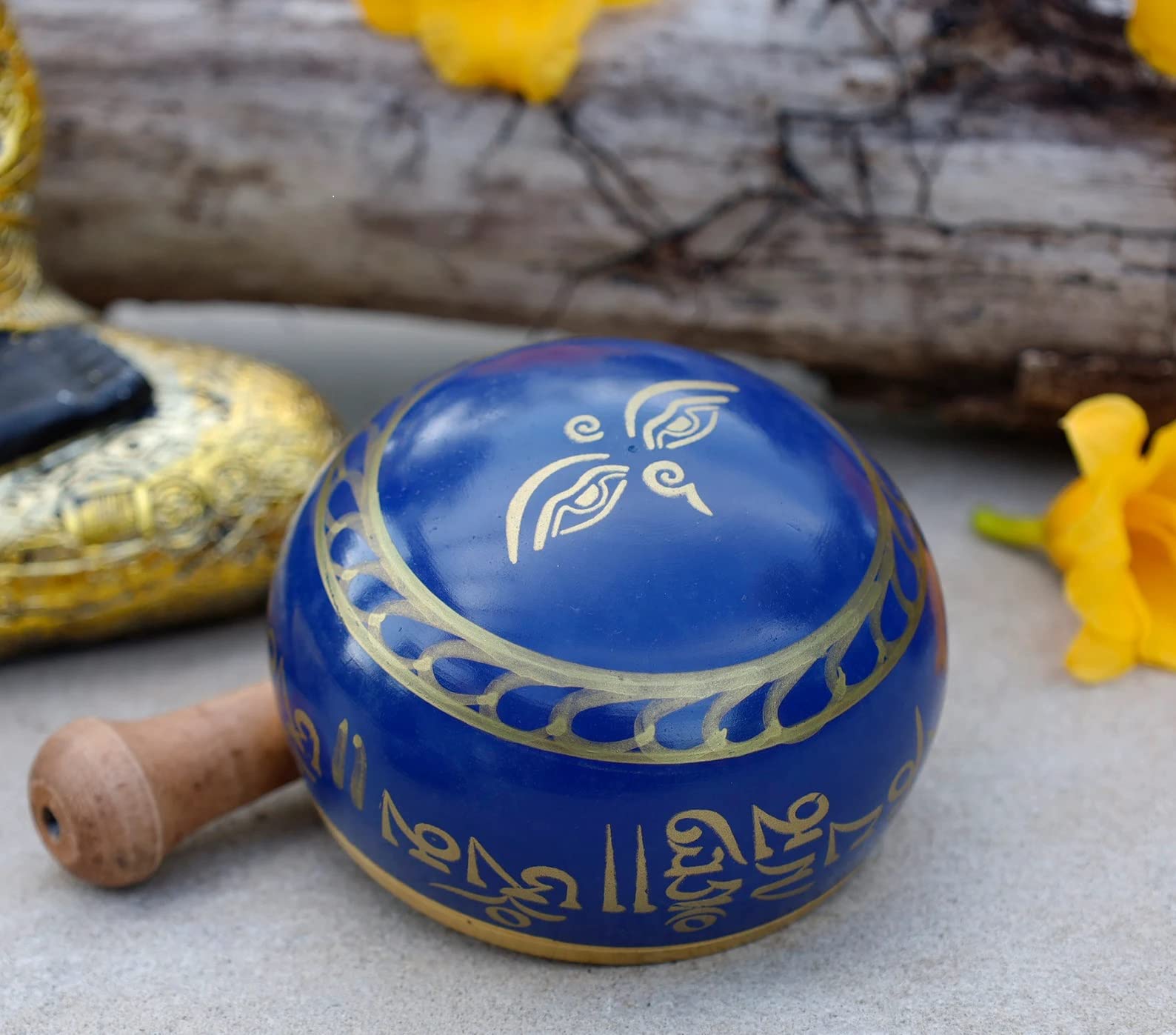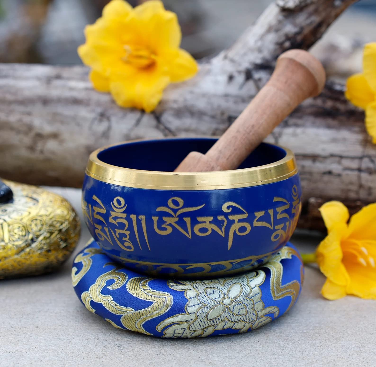 TIBETAN RITUAL CURTAIN Tibetan Meditation Om Mani Singing Bowl/Cushion/Mallet (Blue)