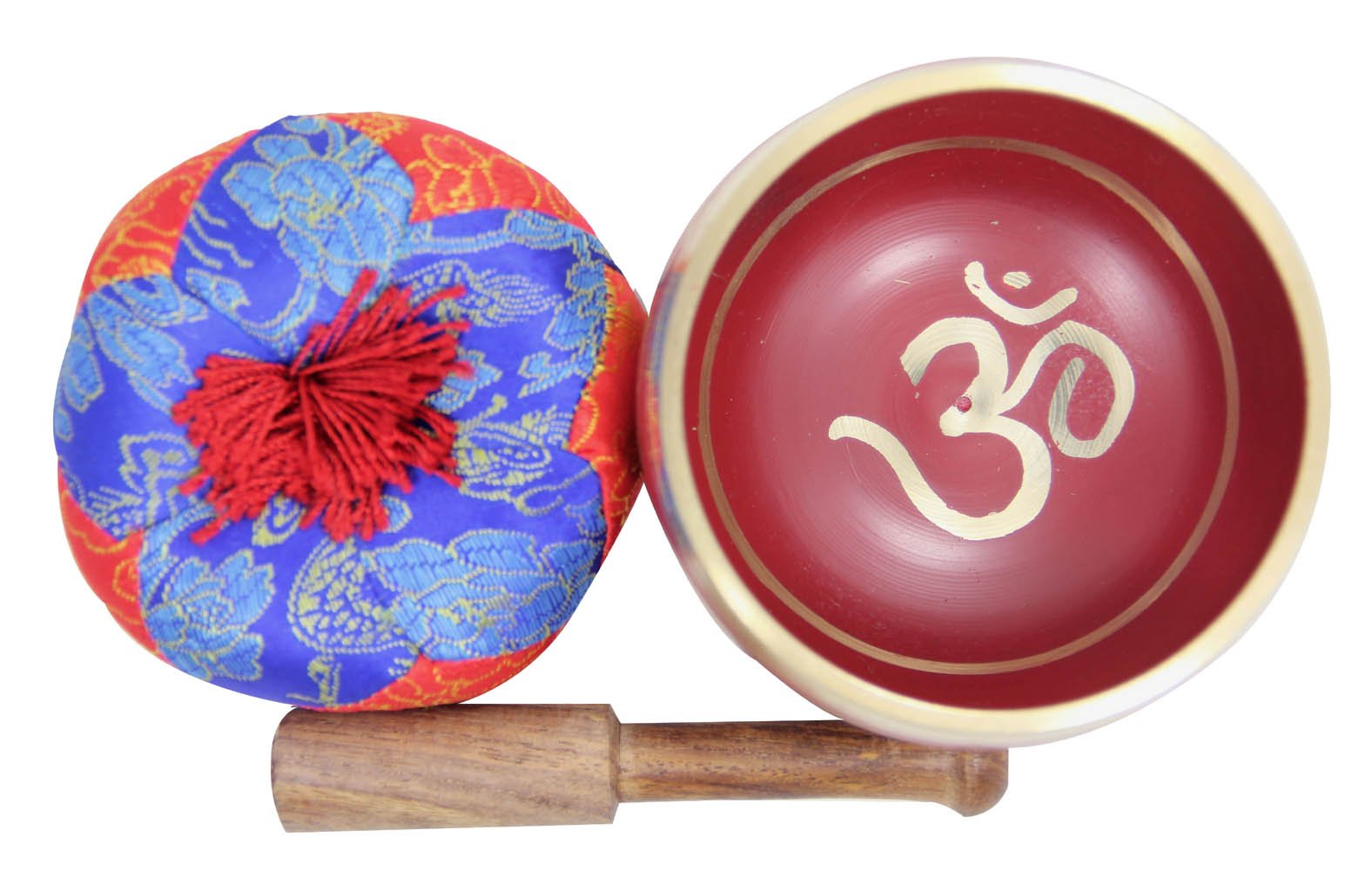 TIBETAN RITUAL CURTAIN Tibetan Relaxing Om Singing Bowl/Cushion/Mallet (Red)
