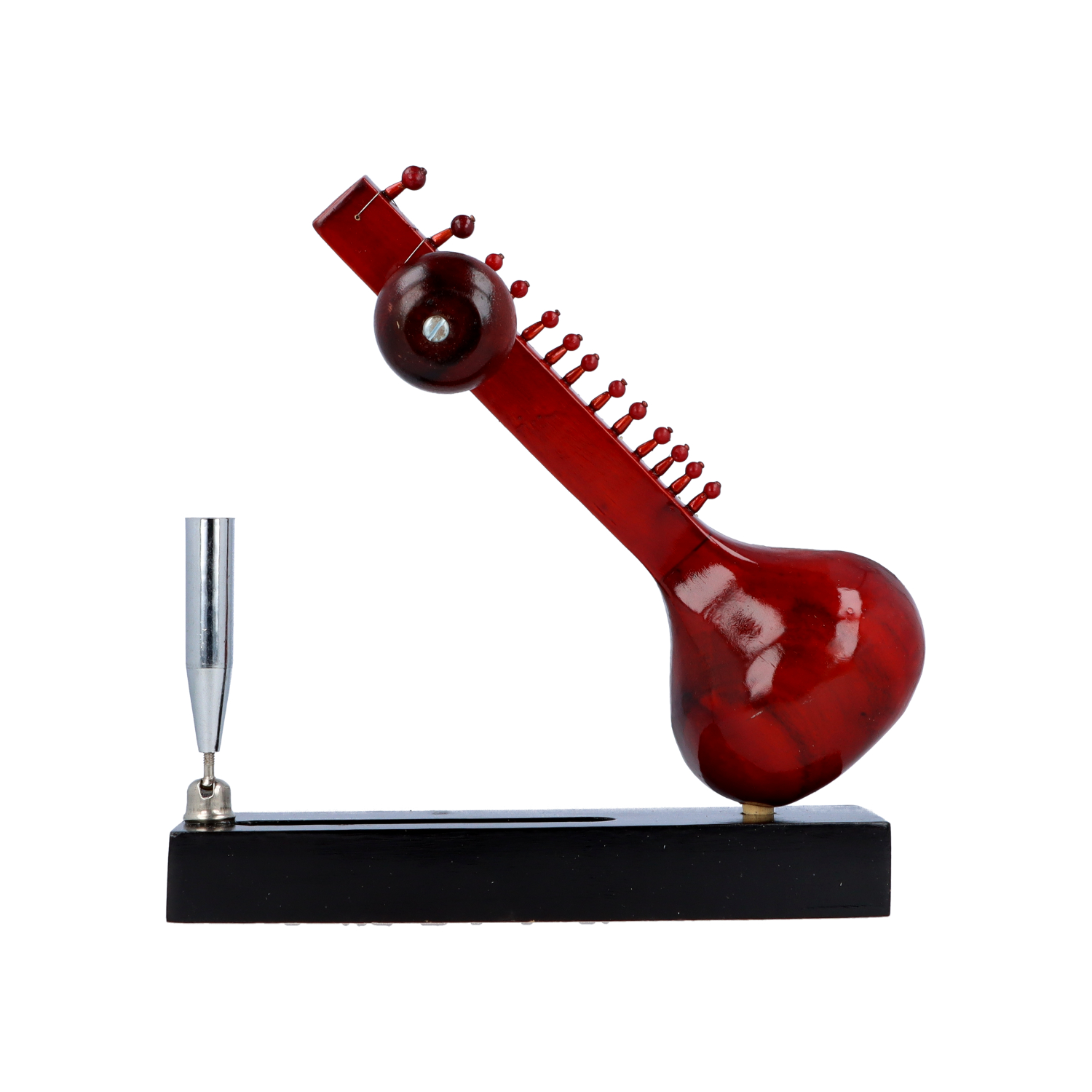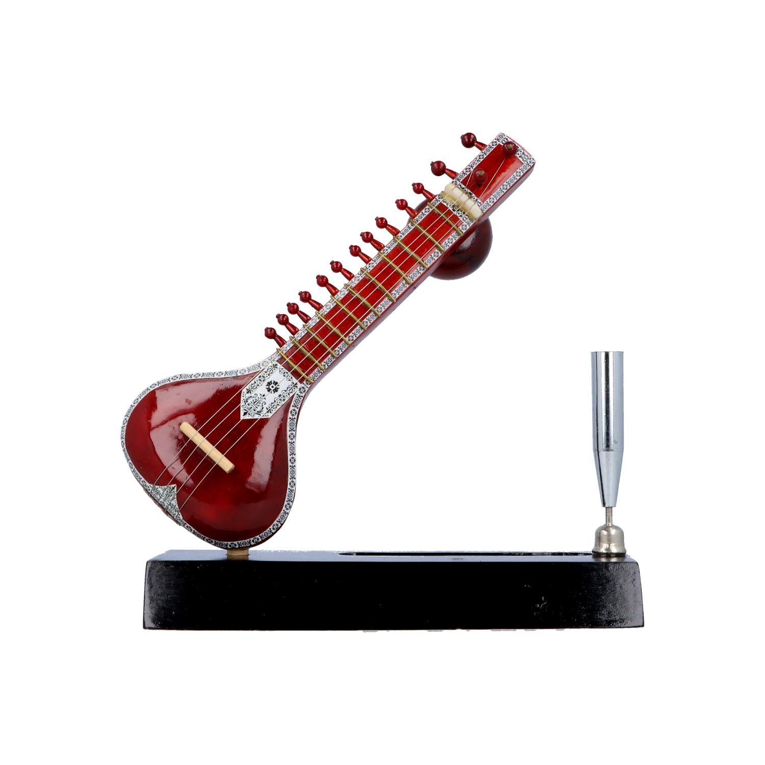 HomeHomeMusical InstrumentsViolinSilkrute Decor Classical Miniature Sitar with Pen Stand, Handcrafted Music Instrument Miniature Acoustic Sitar with Pen Stand, Dark Red Color