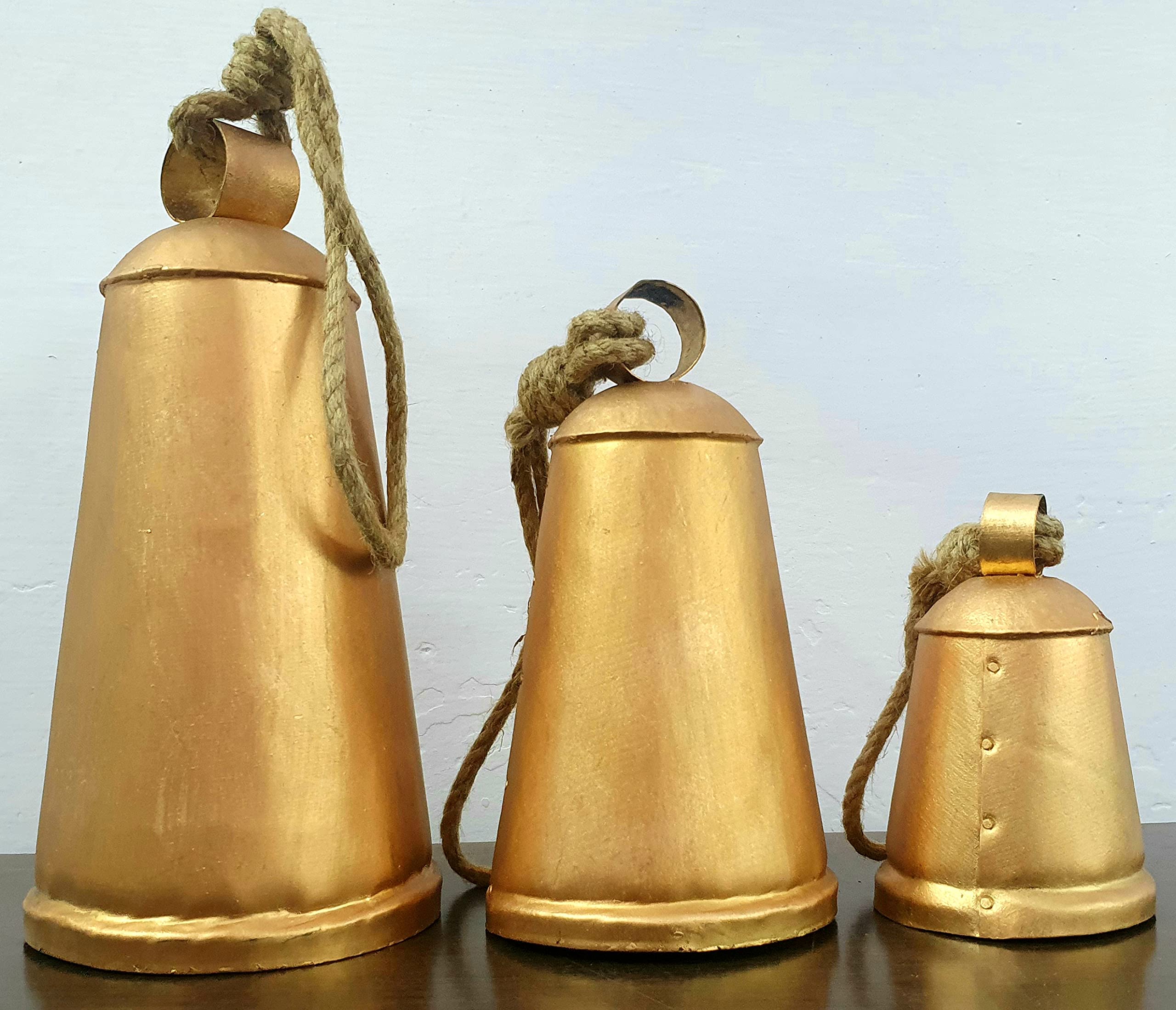 HomeHomeSpiritualBellsBEHAT BRASS WIND CHIMES - HANGING BELLS 14-22-28cm Large Handmade Set of 3 Rustic Vintage Lucky Camel Bells On Rope with Jute Bag Wall Hanging Dcor