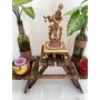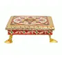 HomeHomeSpiritualChowkiMEENAKARI ENAMEL PRODUCTS Golden meenakari Wooden Pooja bajot All Purpose Festive Decor Small Religious chowki Peacock Design for puja a ghar Gold (6" X 6" INCHES)