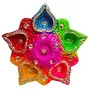 DHOKRA CRAFT Color Terracotta/Earthen Clay Decorative 5 Diwali Diya Decorative Tray Puja