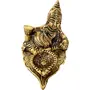 HomeHomeSpiritualEco-Friendly DiyaDHOKRA CRAFT Metal Kuber Diya Deepam for Good Luck Kuber Sitting On Leaf with Diya Decorative Showpiece - 7 cm (Metal Gold) (Standard 1)
