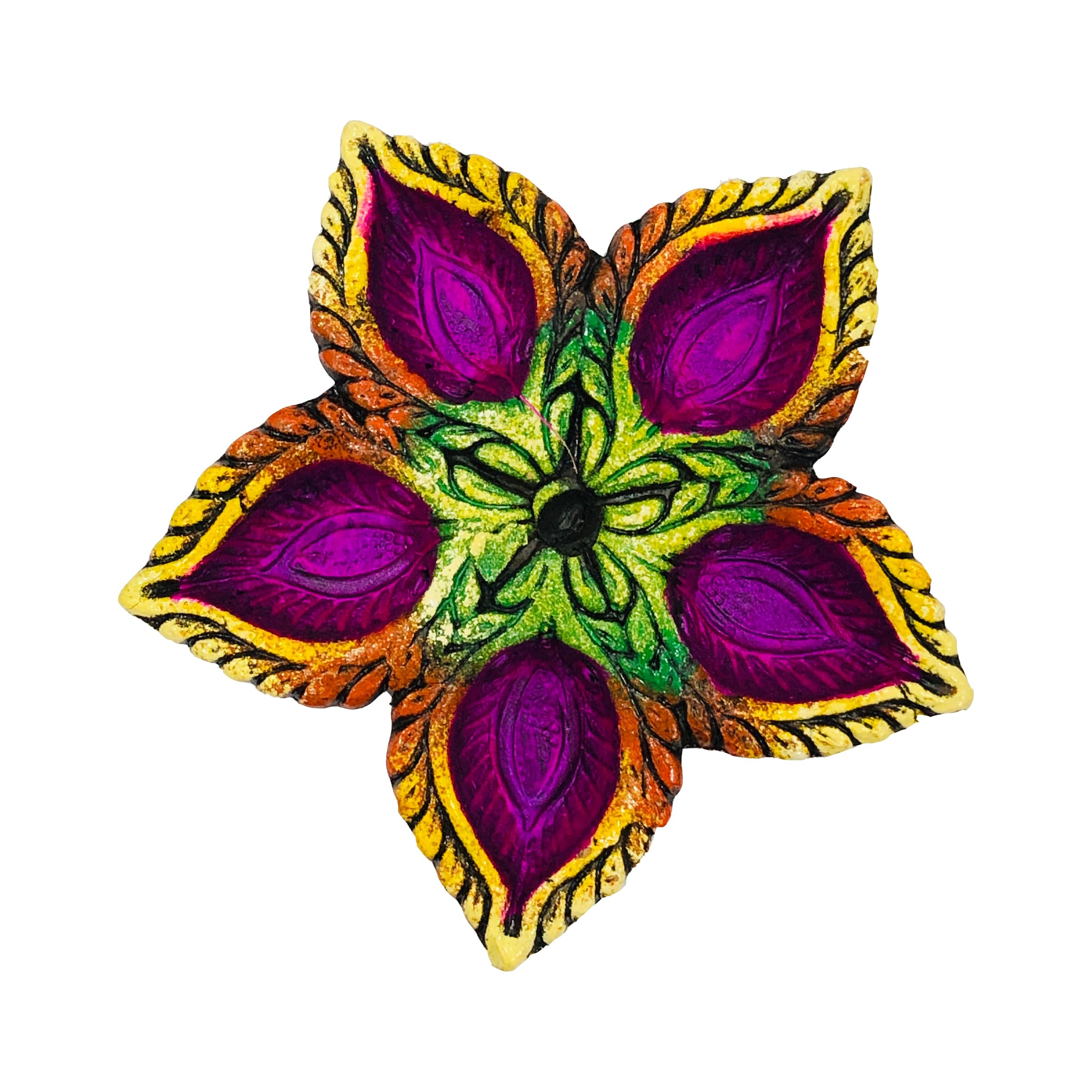 SHOPMEFAST Terracotta Earthen Clay Handcrafted 5 Diwali Diya Puja Thali, Decorative Tray for Home Decoration (Diameter : 5.5 Inches, Multicolour)