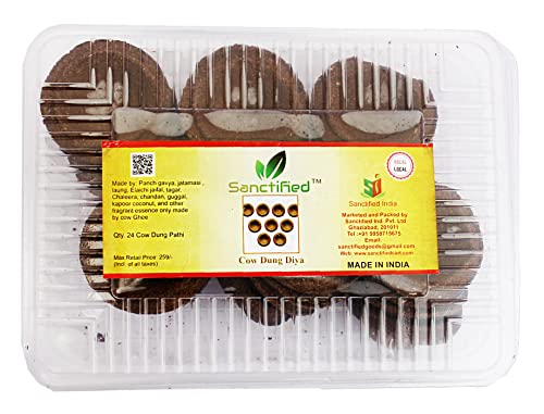 SANCTIFIED Cow Dung Diya Made with Cow Dung Panch Gavya for Pooja Diye Set of 24pcs