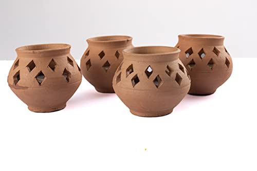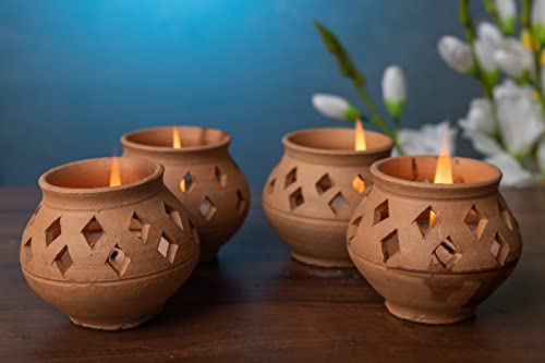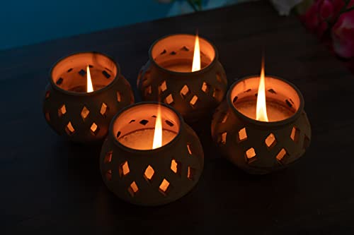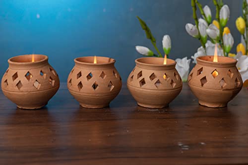 Karru Krafft Handmade Terracotta 3hour Burning Wax Diya - Set of 4 Subha-Labh Diya for Pooja Decor Navaratri Diya Diwali Diya Mitti Diya Oil Diya Diwali Gifting Home Decor