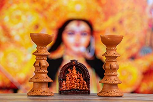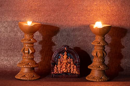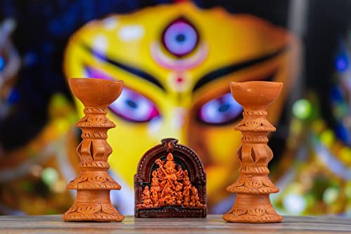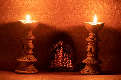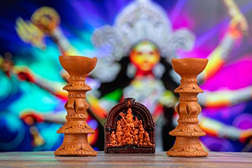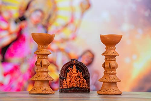 HomeHomeSpiritualIdolsKarru Krafft Handcrafted Terracotta Stand Large Diya/Pilsuz Diya Set of 2 and Durga Idol for Pooja Decor Festive Decor Diwali Decor Home Decor Home Lighting Festive Gifting