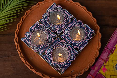 Karru Krafft Handmade Terracotta Wax Diya - Set of 4 for Pooja Decor Navaratri Diya Diwali Diya Mitti Diya Oil Diya Diwali Gifting Home Decor
