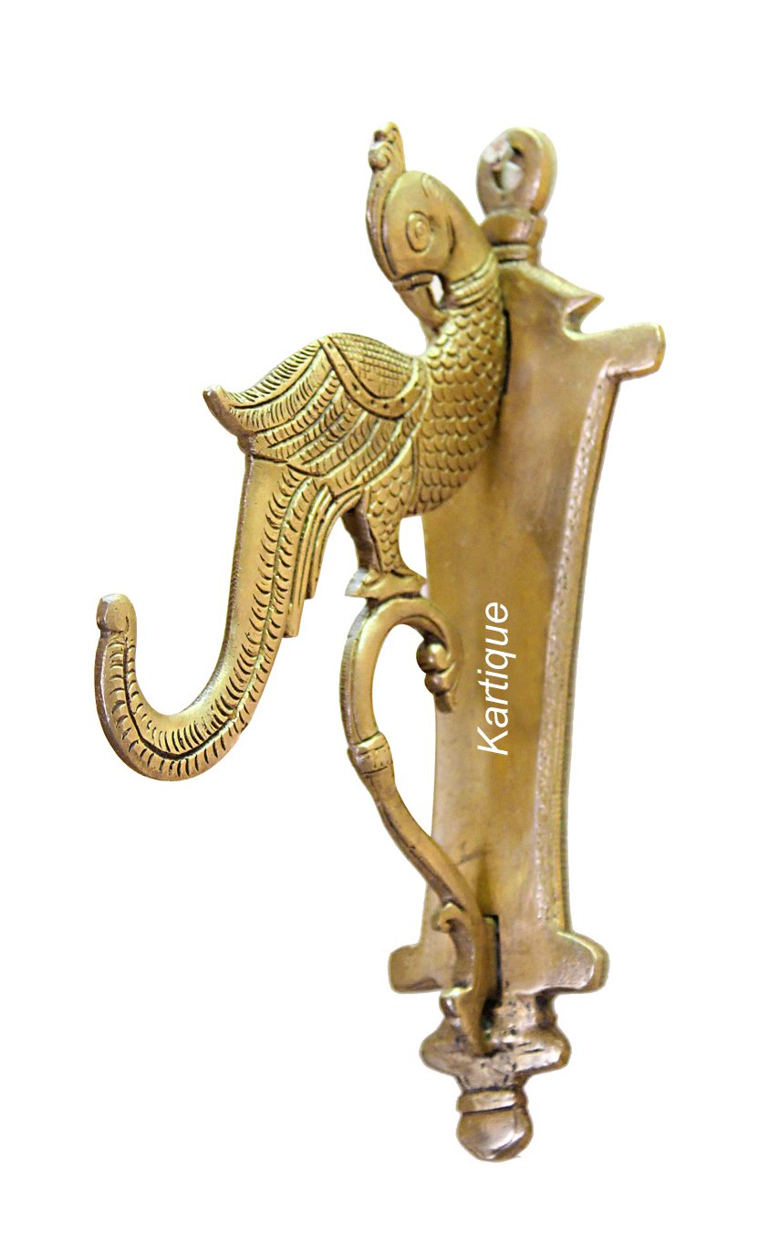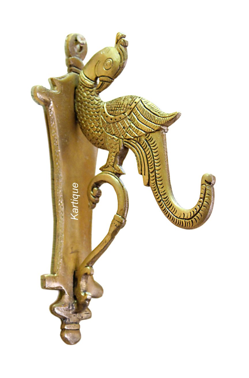 Kartique Brass Parrot Bracket Hook for Hanging Diya | Bell | Wall Hanging | Cloth Hanger Traditonal Parrot Design Diya Holder | Home Decor |