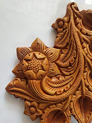 Mukherjee Handicraft’s Terracotta/Earthen Clay Decorative 5 Diwali Diya Puja Decorative Tray Leaves