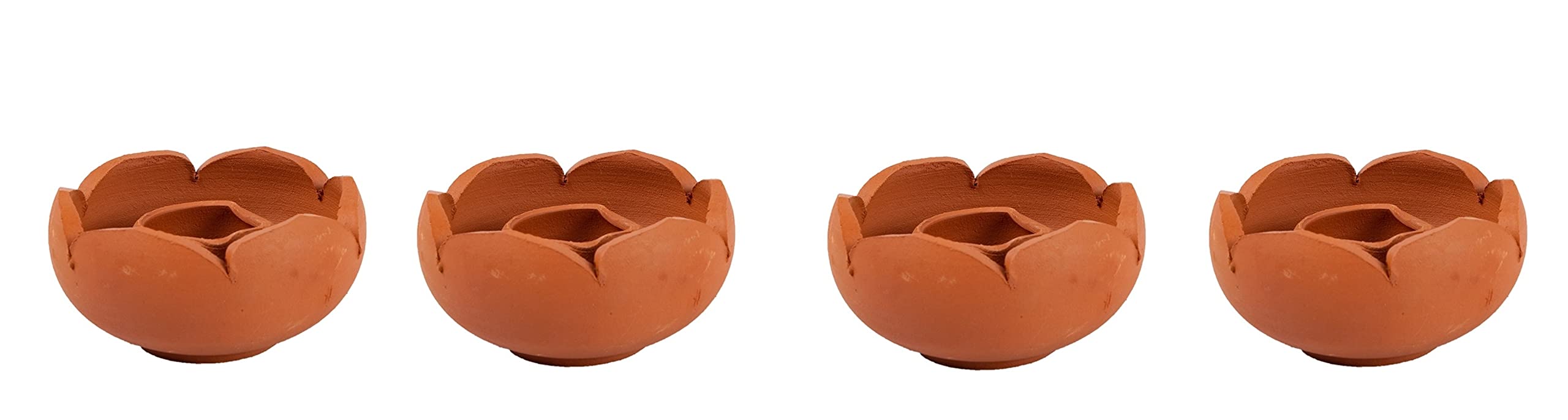Village Decor Earthenware Diyas Lotus lamp (4 Qty Lotus lamp)