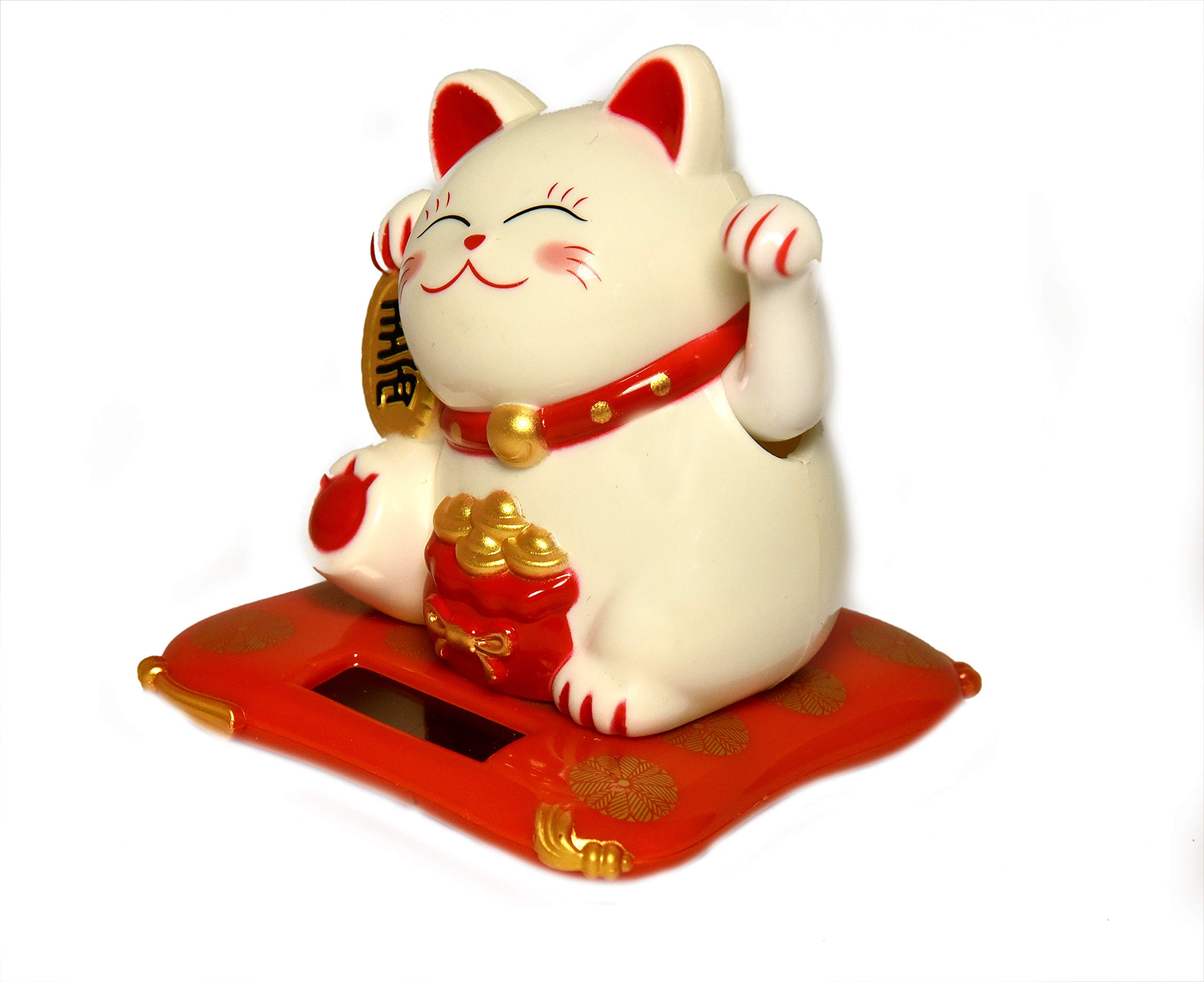 HomeHomeSpiritualFengshuiGemo India Solar Feng Shui Lucky Cat Chinese Maneki Neko Waving Arm for Fortune Money and Good Luck Fengshui Lucky Cat Swinging Arm Height: 7cm. GF235.