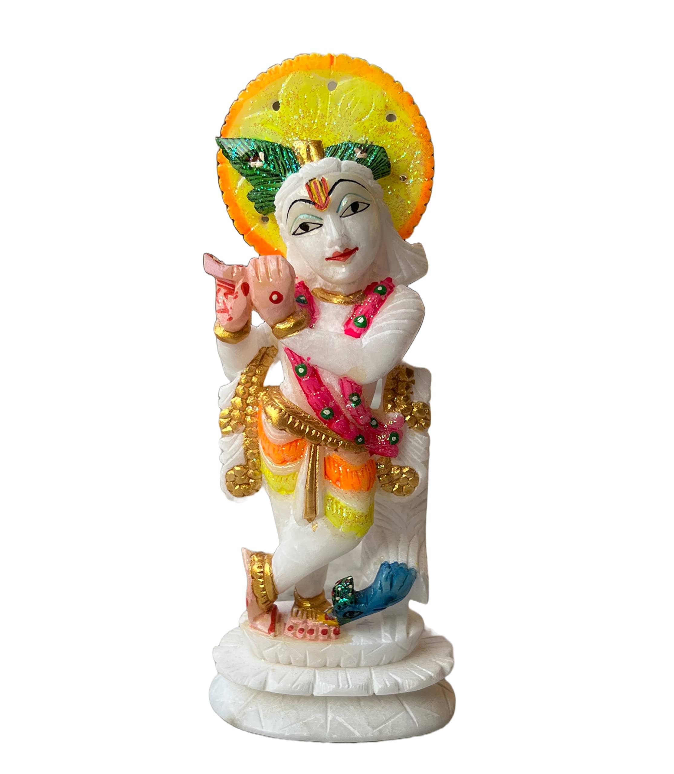 AGRA SOFT STONE CARVING PRODUCTS Alabaster Marble Krishna Idol for Home Decor & Puja (Painted)