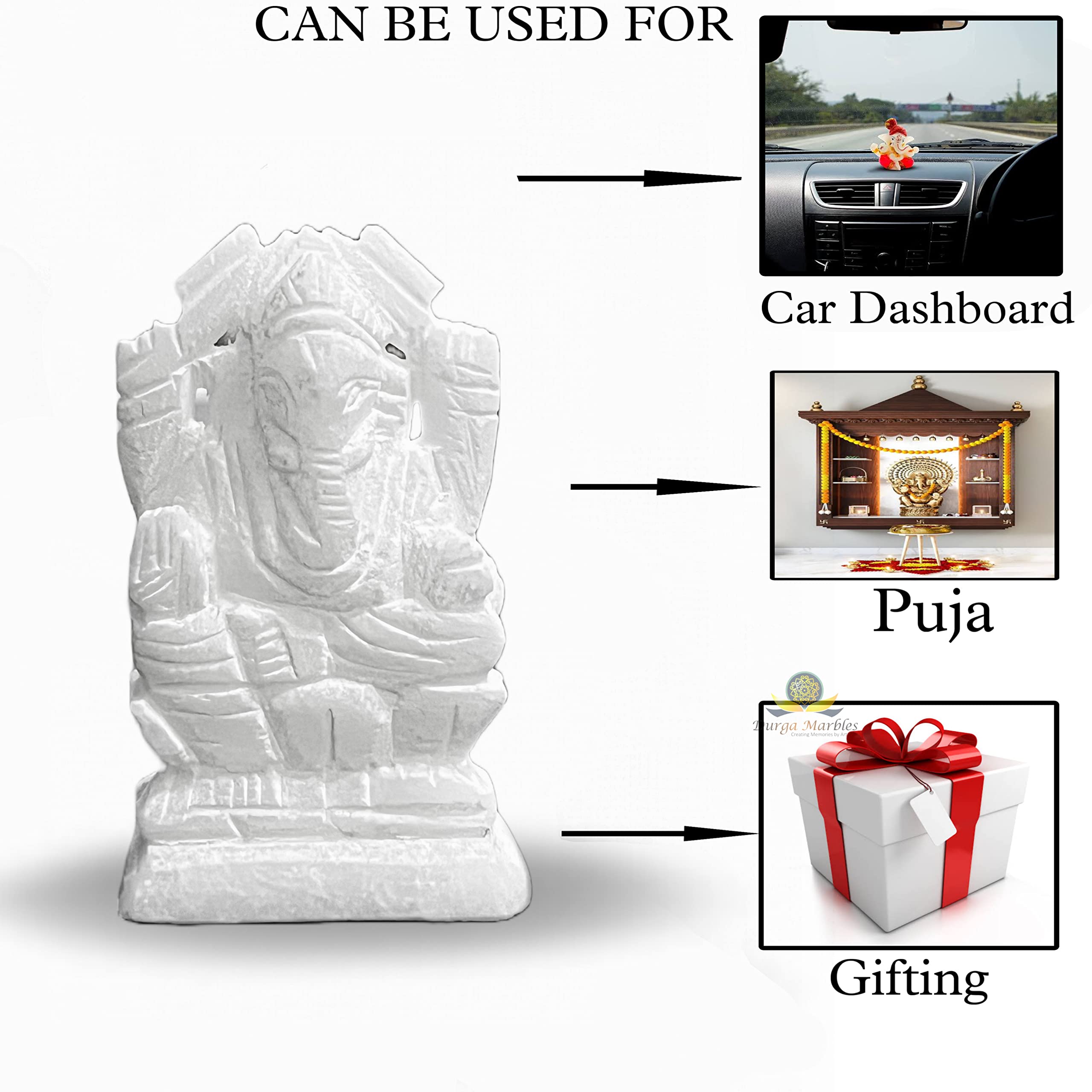 AGRA SOFT STONE CARVING PRODUCTS Handmade Marble Ganesh Idol for Car Dashboard/puja/Home Dcor (White)