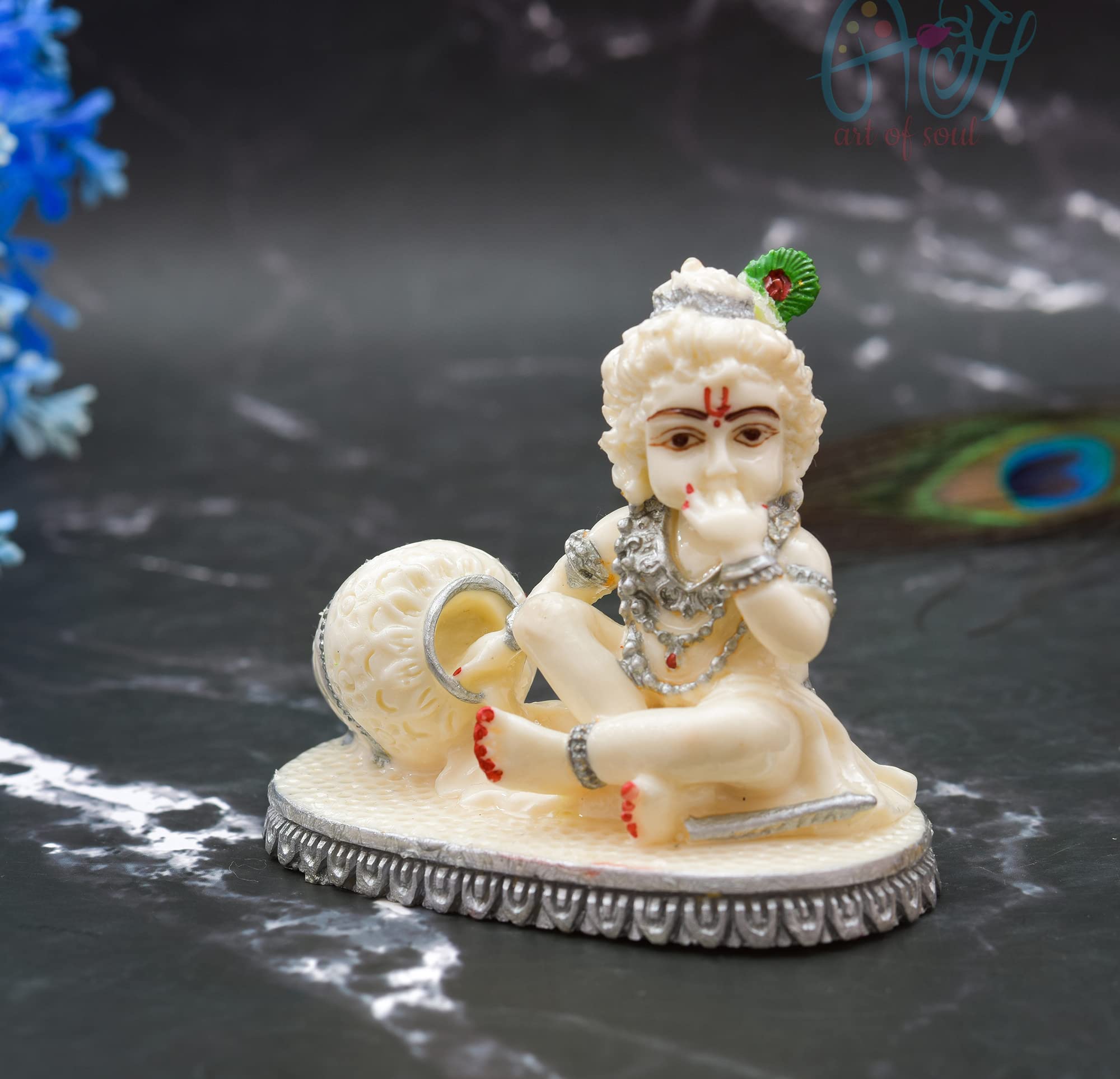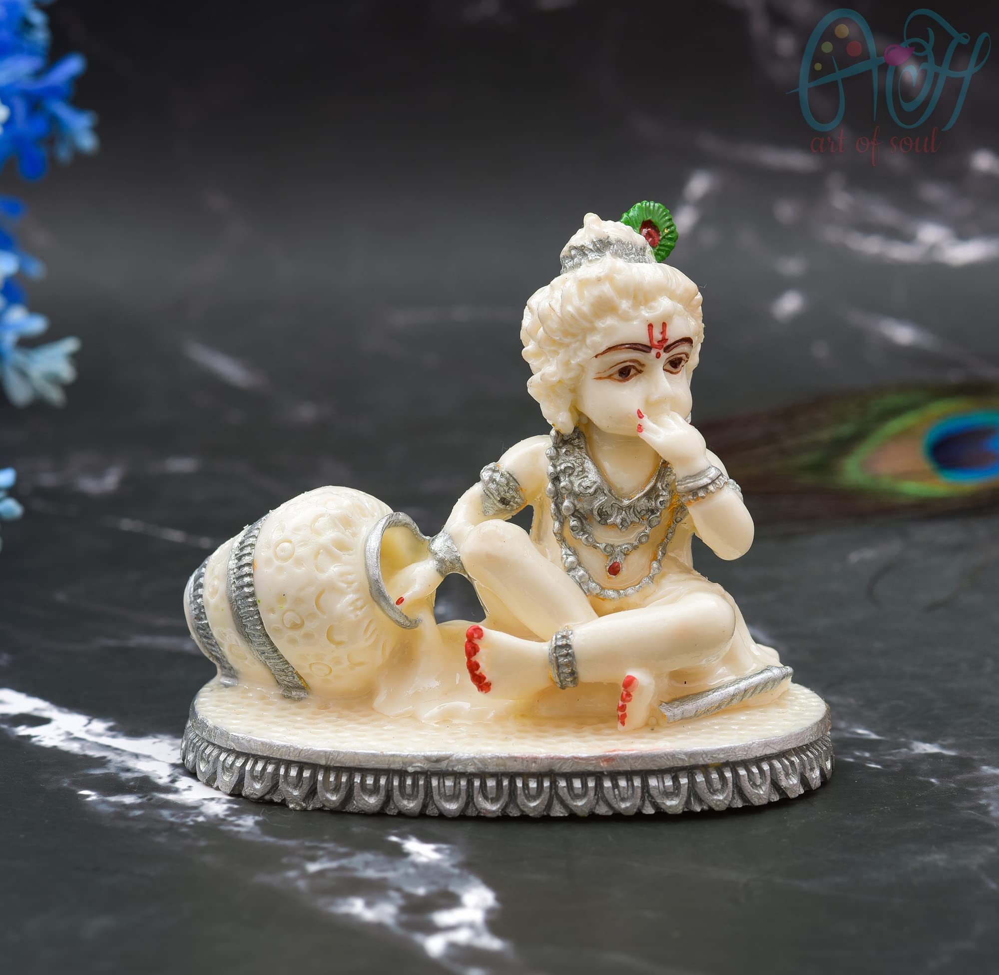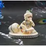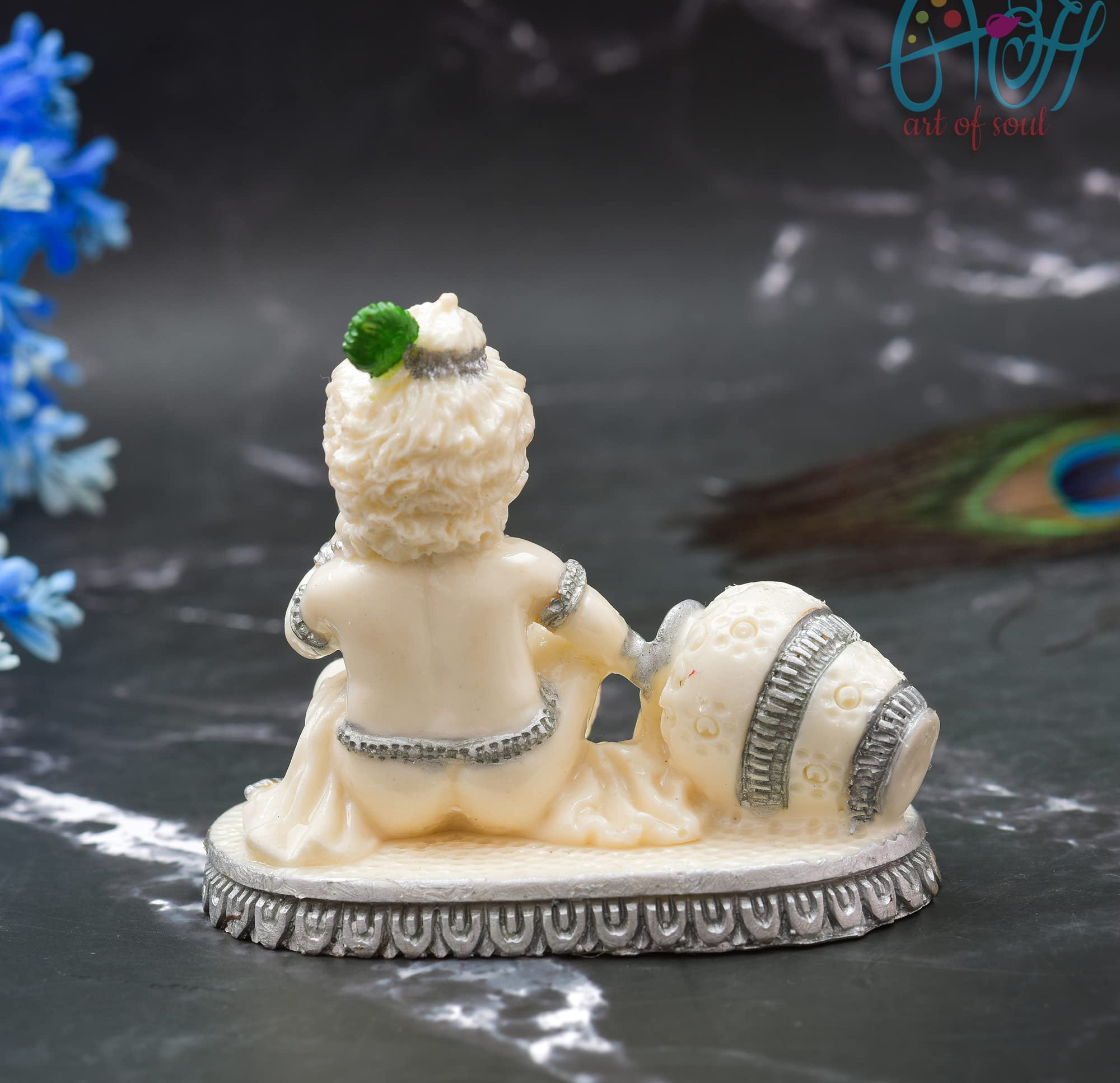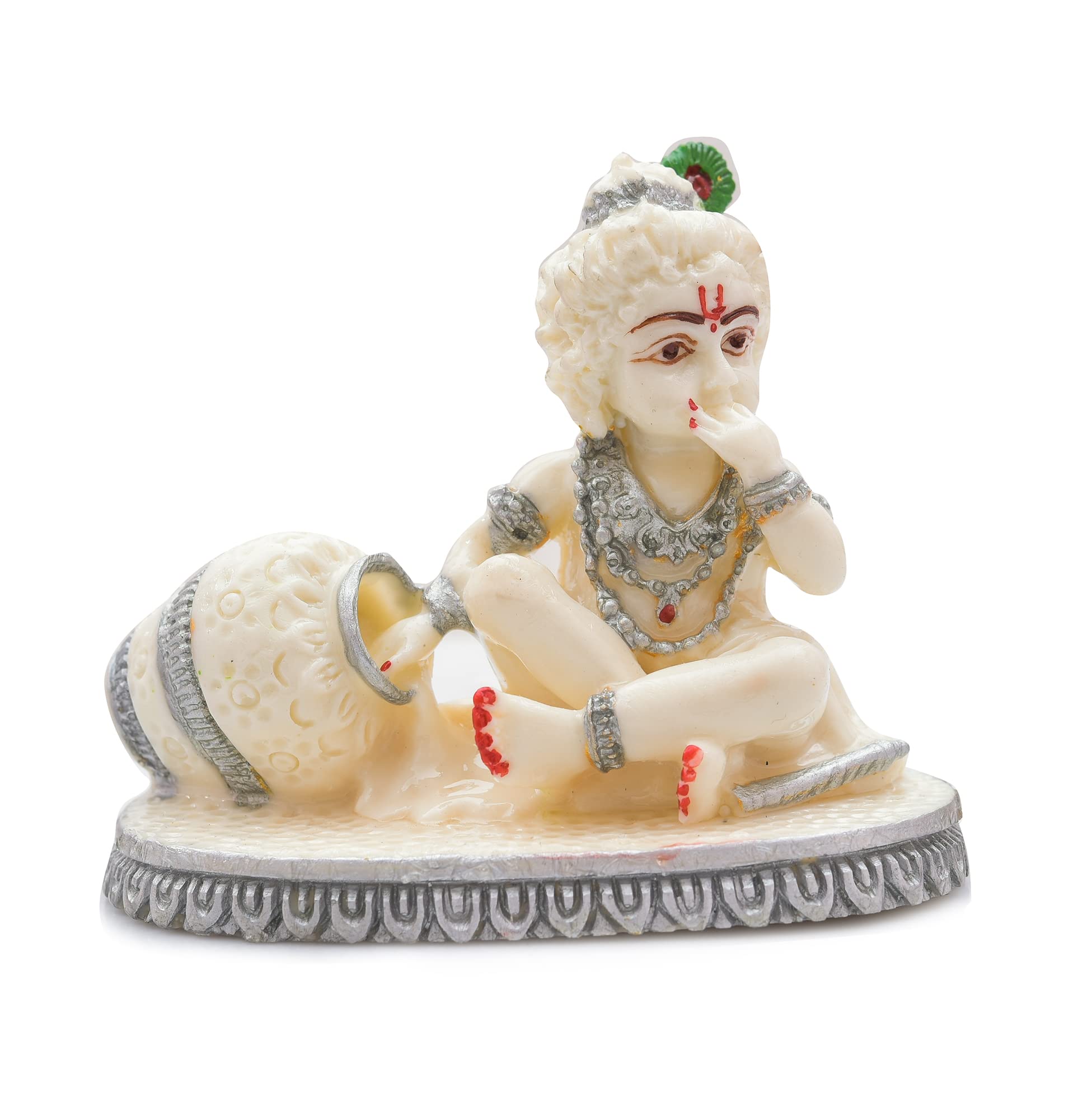 Archna Polyresin Handicraft Krishna Staue Figurine Showpiece for Home Office Decor Temple Makhan Chor Laddu Gopal Murti Idol (3x3.5 Inch, White)