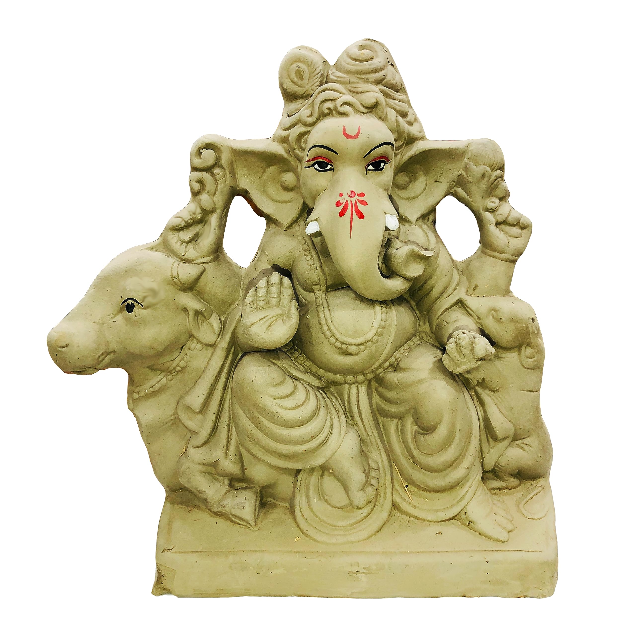 Height : 11 Inches. ; God Ganesha Statue Made from 100% Natural Pot Clay (kachi Mitti) Water Soluble