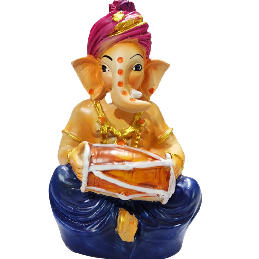 KHURJA POTTERY Handicraft Polyresin Ganesha Idol with Dholak Showpiece for Home and Office Decor Blue