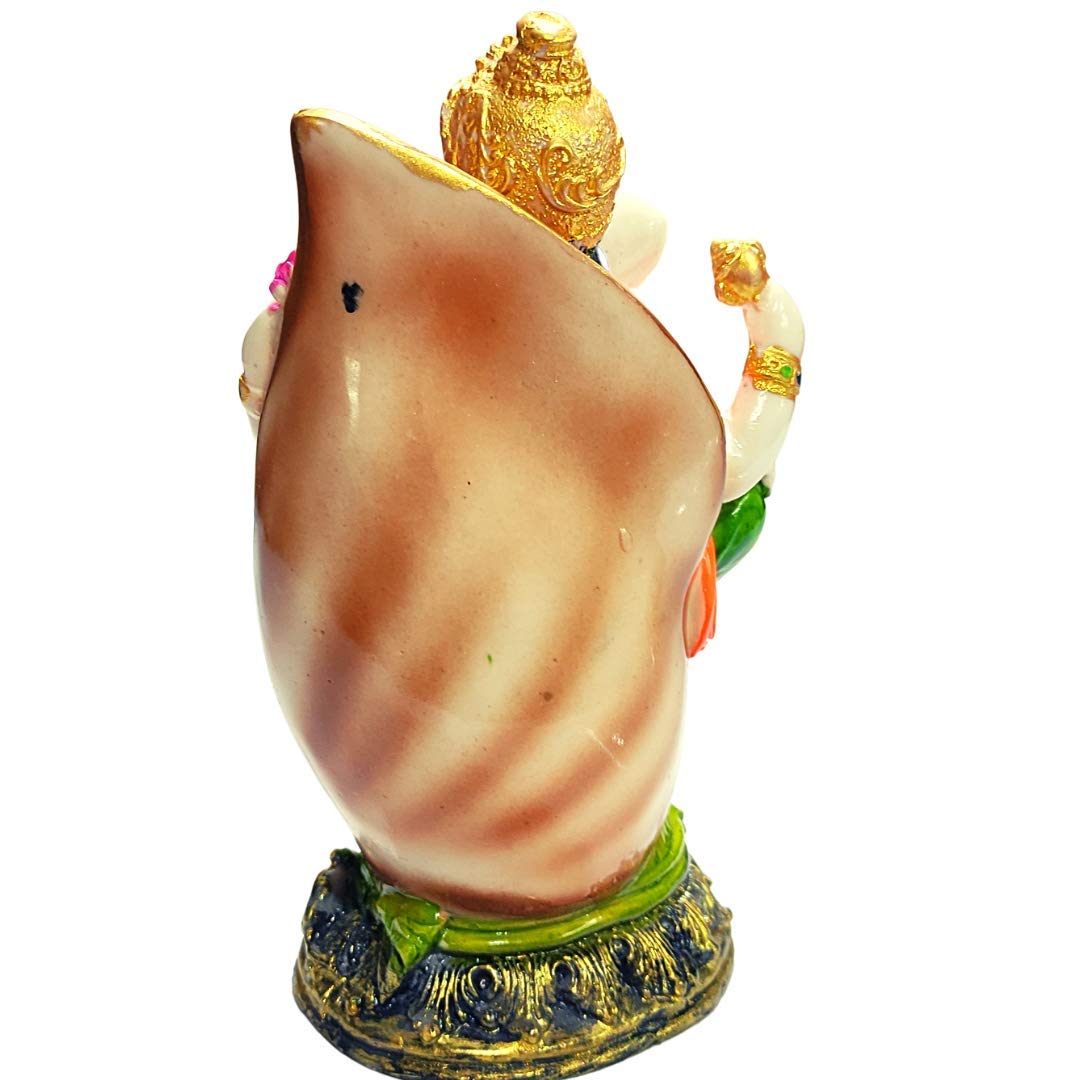 KHURJA POTTERY Handicraft Polyresin Ganesha Idol with Shank Showpiece for Home and Office Decor Green
