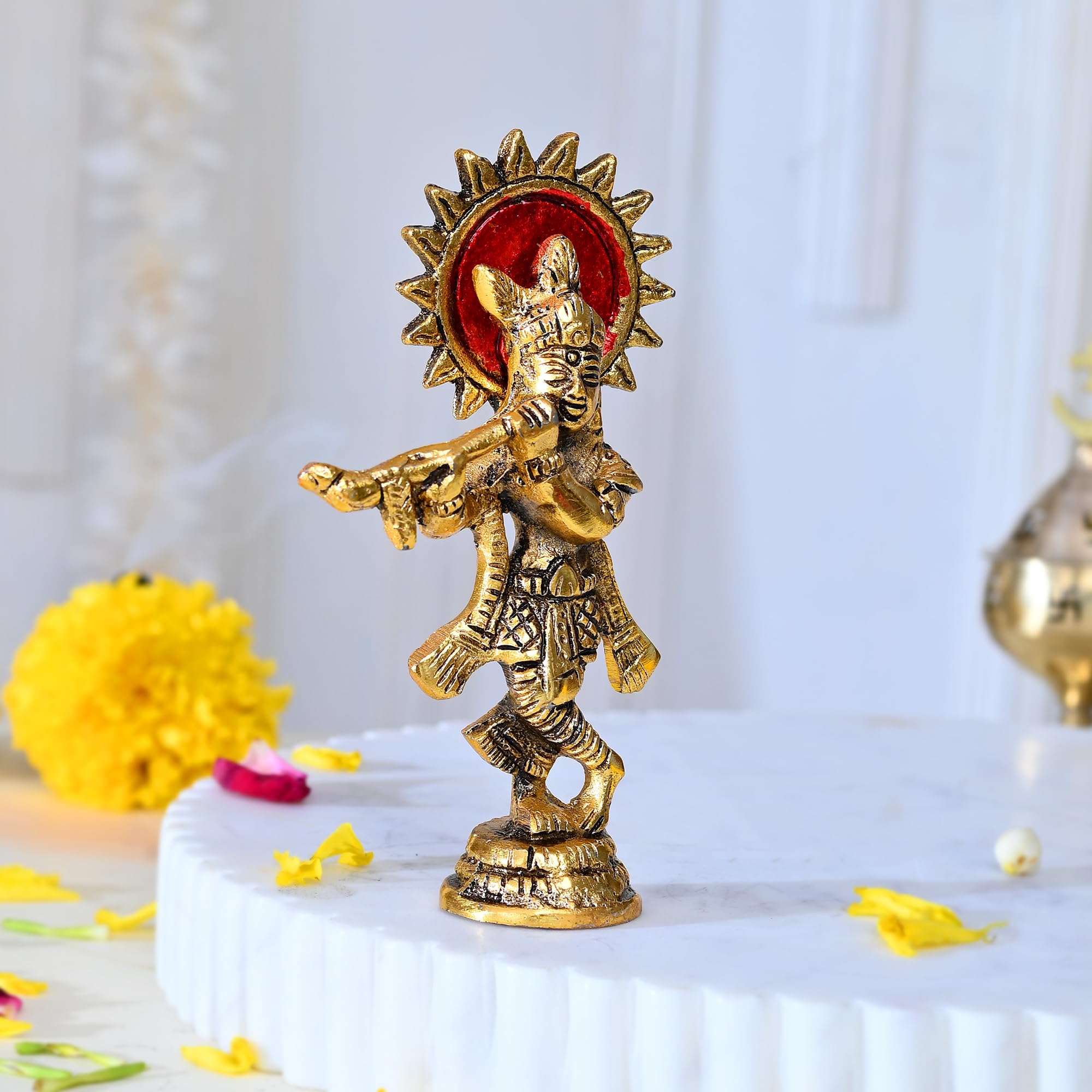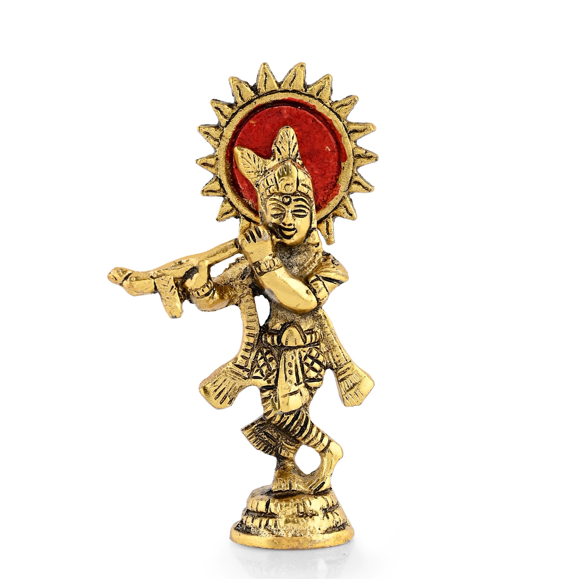 HomeHomeSpiritualIdolsKrishna Idol Statue Standing Krishna Murti Flute Playing Krishan Decorative Figurine for Diwali Rakshabandhan Gift Home Temple Office Tabletop Pooja Room Car Dashboard (4.5 in Height)