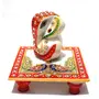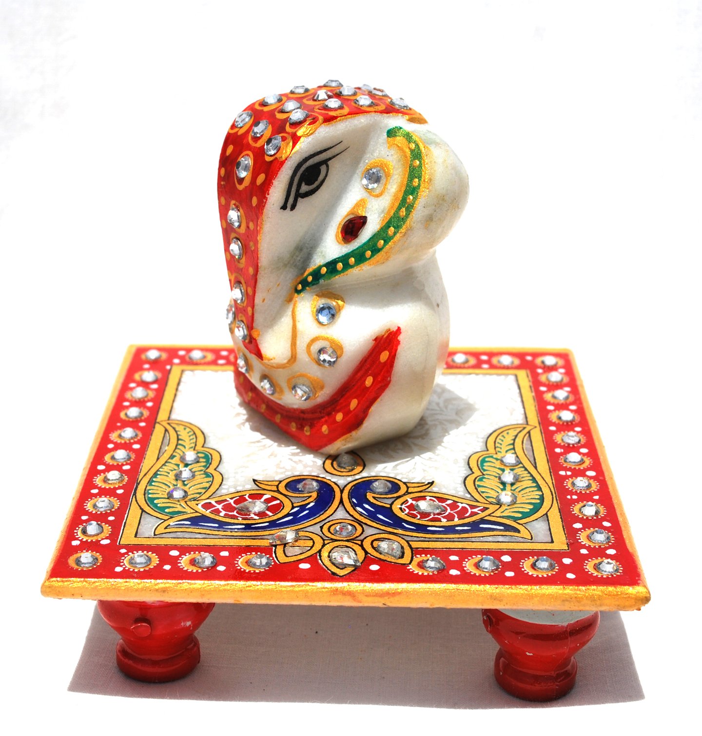 Lord Ganesha Marble with Chowki (10.16cm x 10.16cm x 11.43cm)