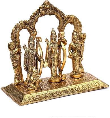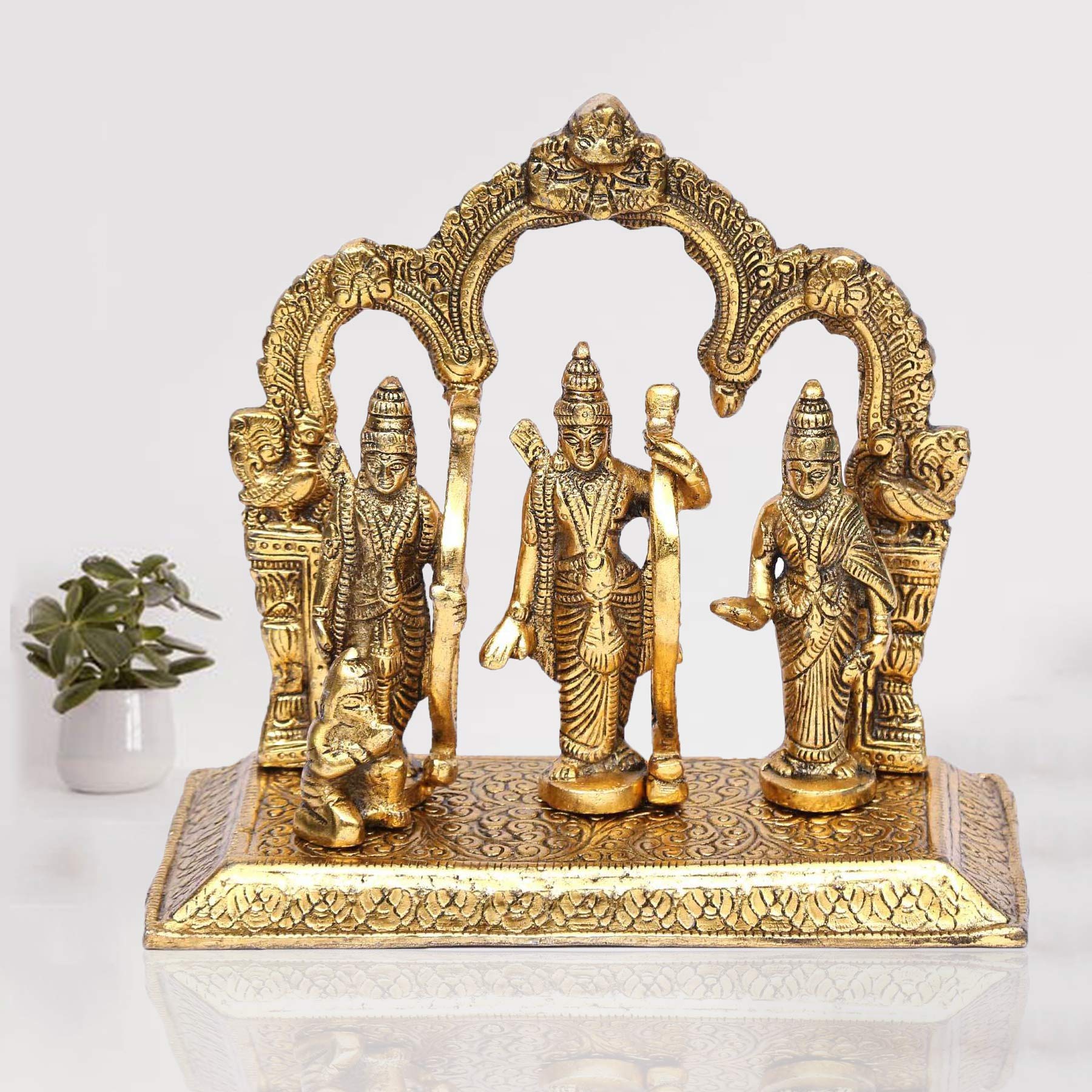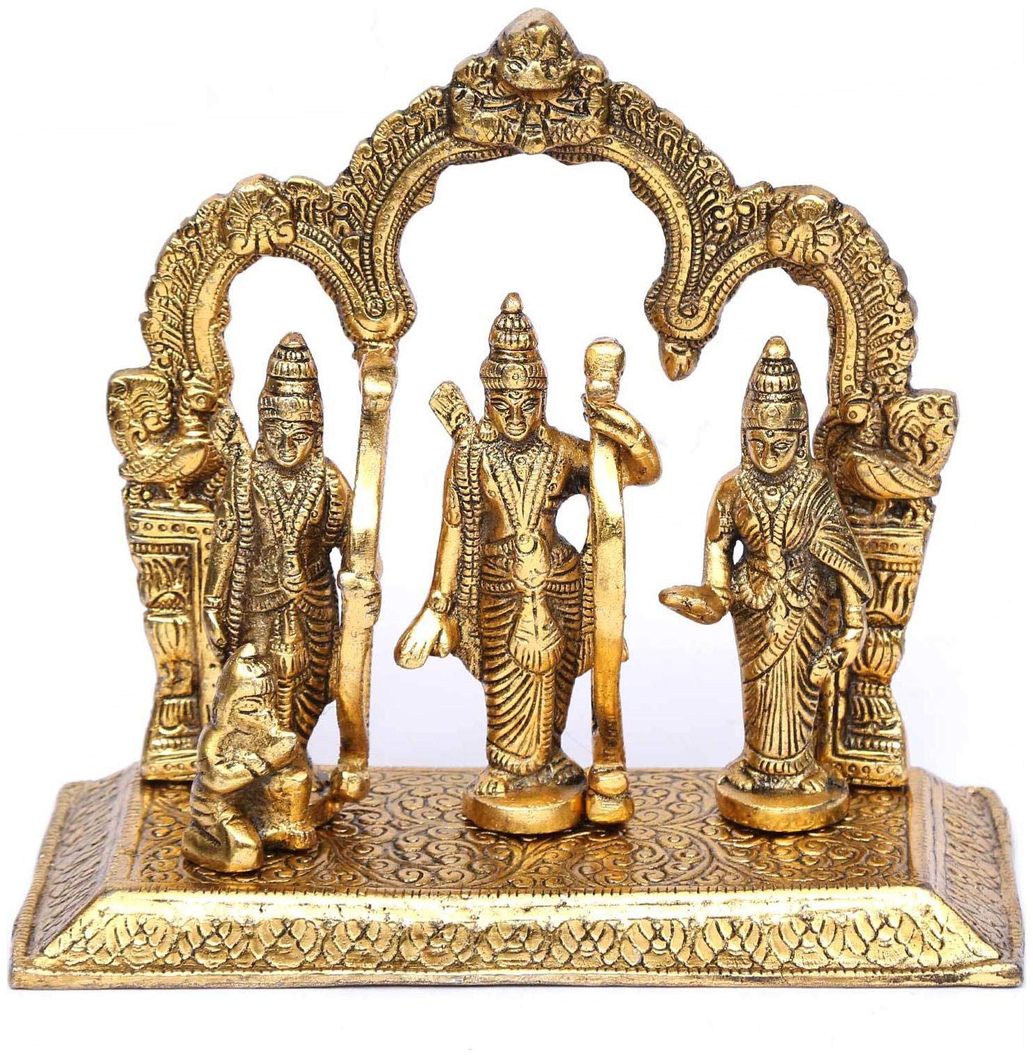 MEENAKARI ENAMEL PRODUCTS White Metal Gold Ram Darbar Idol with Rectangle Base for for Home Temple and Gifts