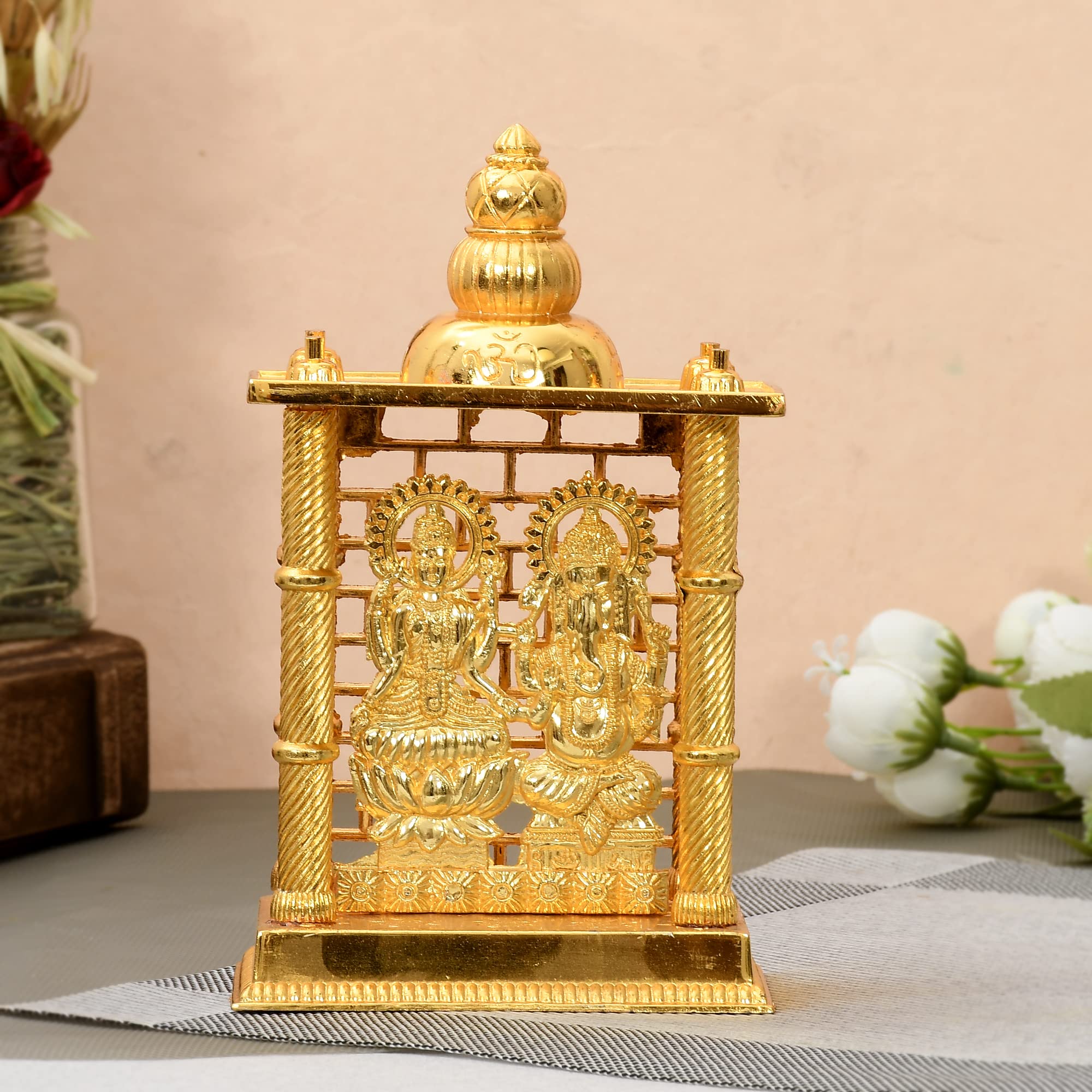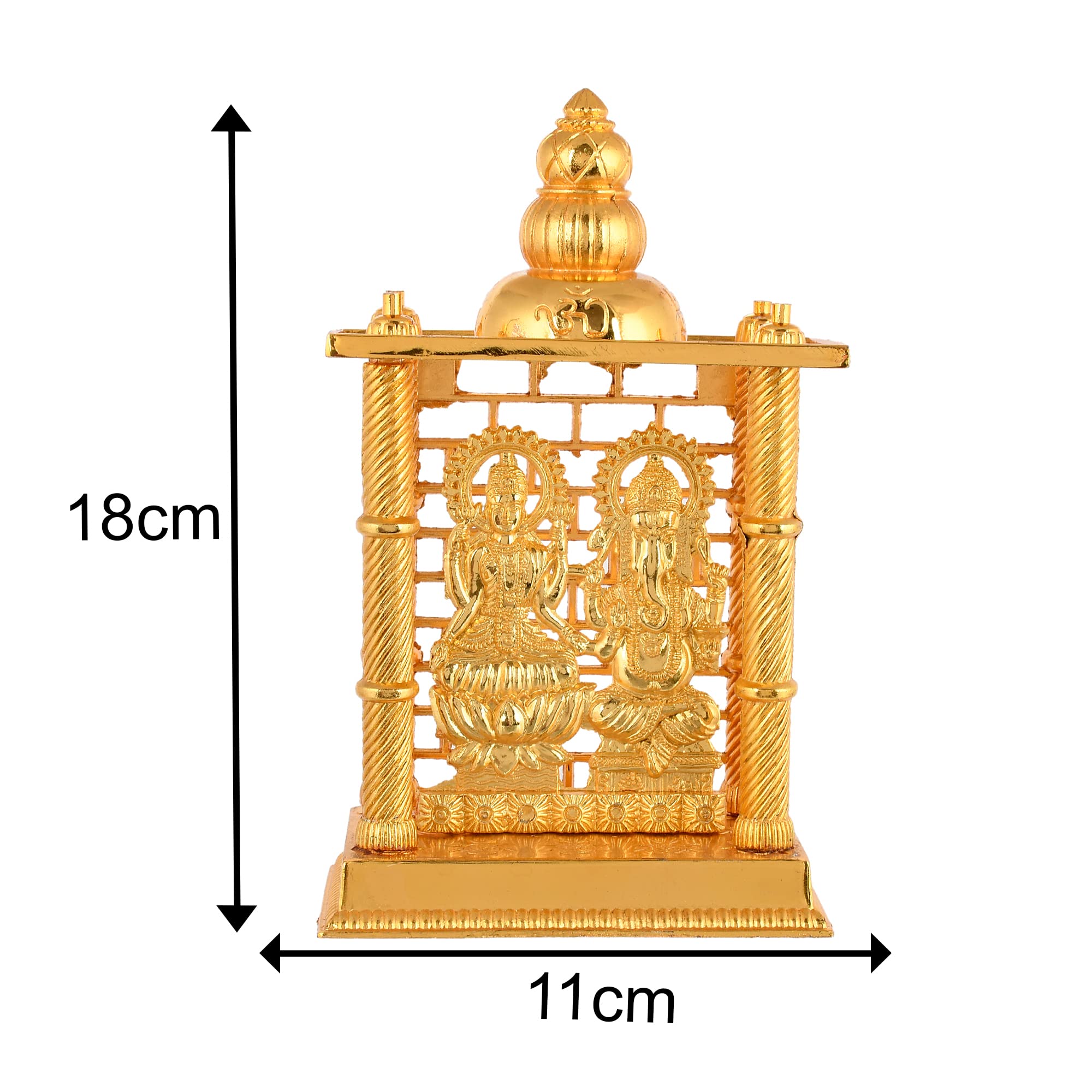 RAJASTHANI METAL HANDICRAFTS Metal Mandir with Statue Laxmi Ji Ganesh Ji Temple for Home Pooja (11x18CM)